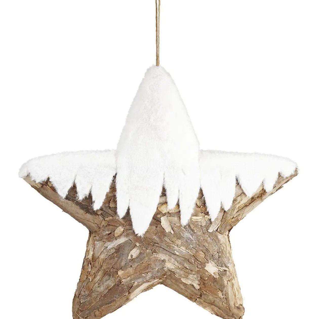 Décoration en forme d’étoile enneigée pour une décoration de Noël à l’esprit nature sauvage.