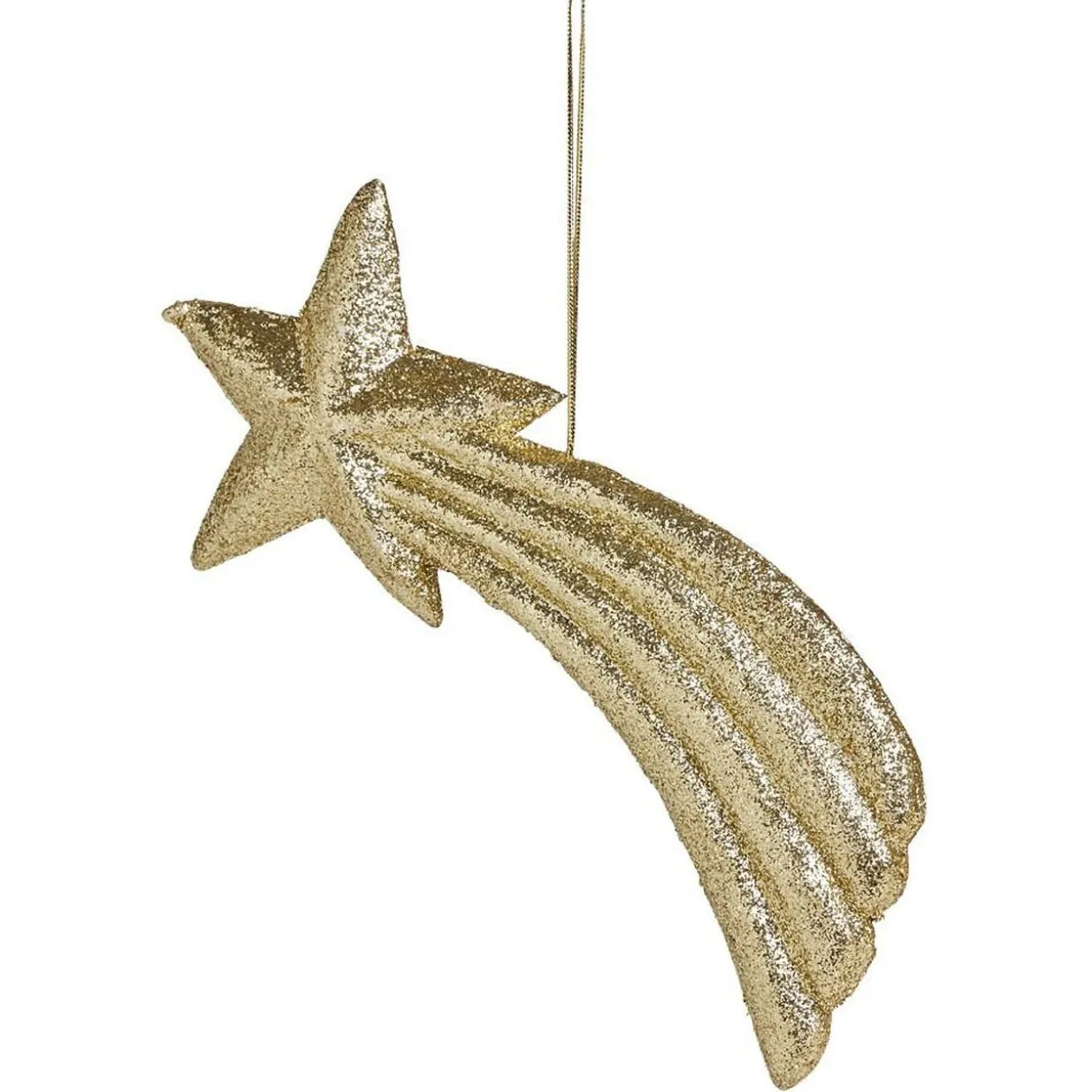 Pour mettre en décoration intérieure ou en décoration de sapin, cette étoile filante à paillettes dorées est idéale.