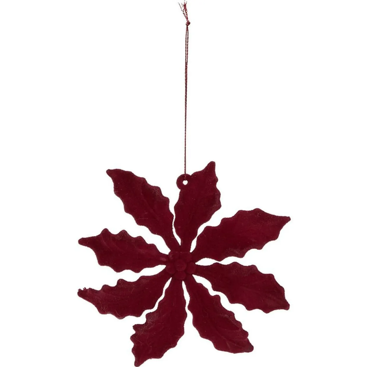 Flocon de neige rouge effet velours à suspendre pour donner à votre décoration de Noël et à votre sapin un aspect vintage.