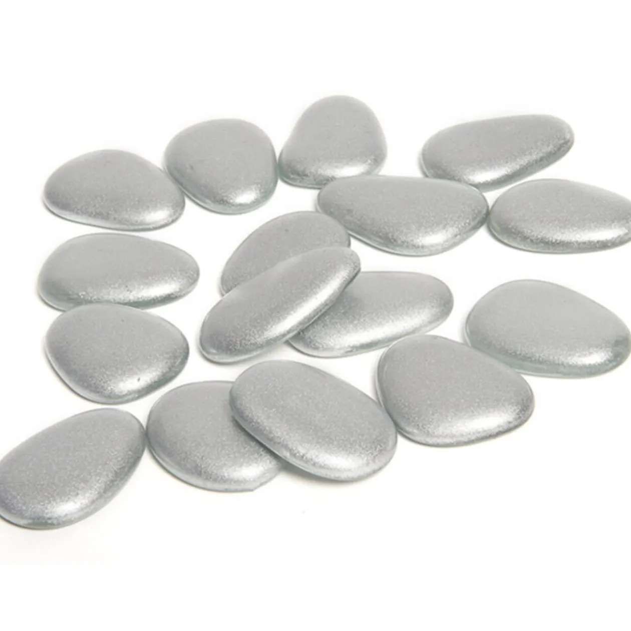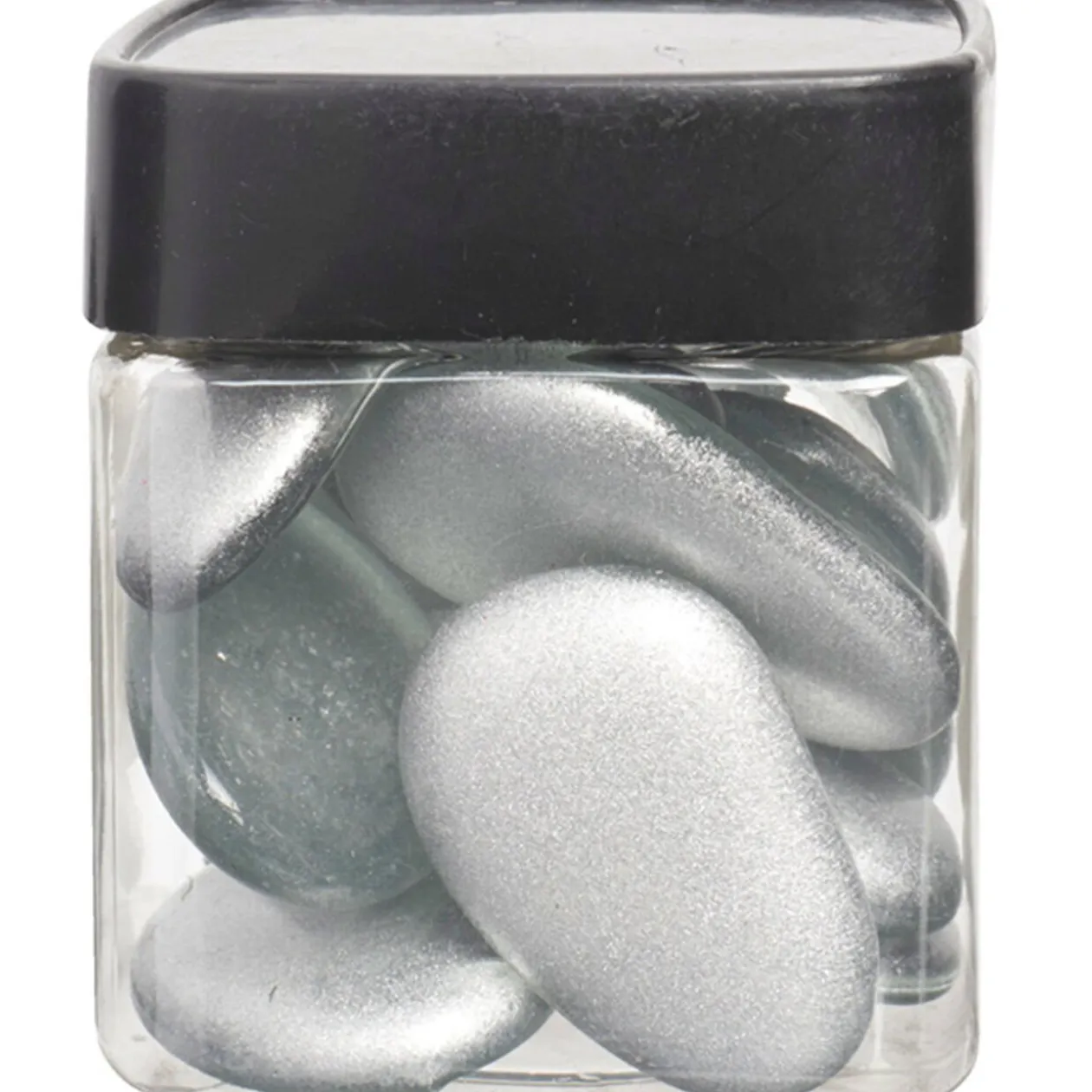 Galets décoratifs argentés, ø 3,5 / 4,5 cm, verre, poids 300 gr. Idéal pour votre décoration de table de mariage.