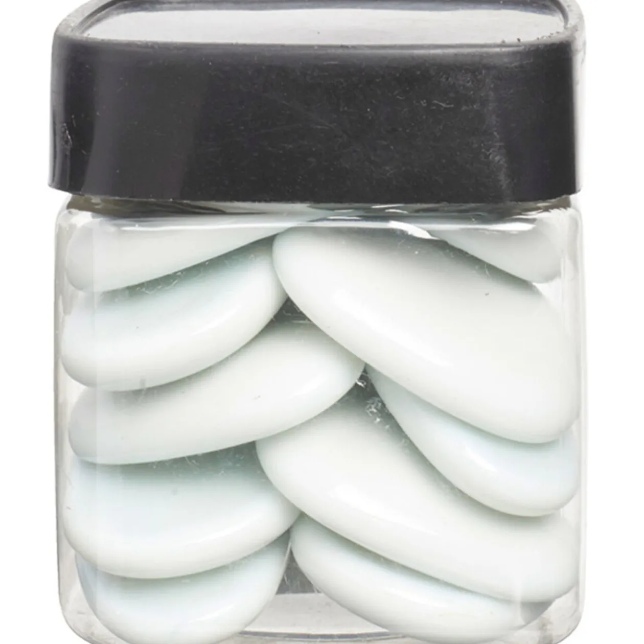 Galets décoratifs blancs, ø 3,5 / 4,5 cm, verre, poids 300 gr. Idéal pour votre décoration de table de mariage.