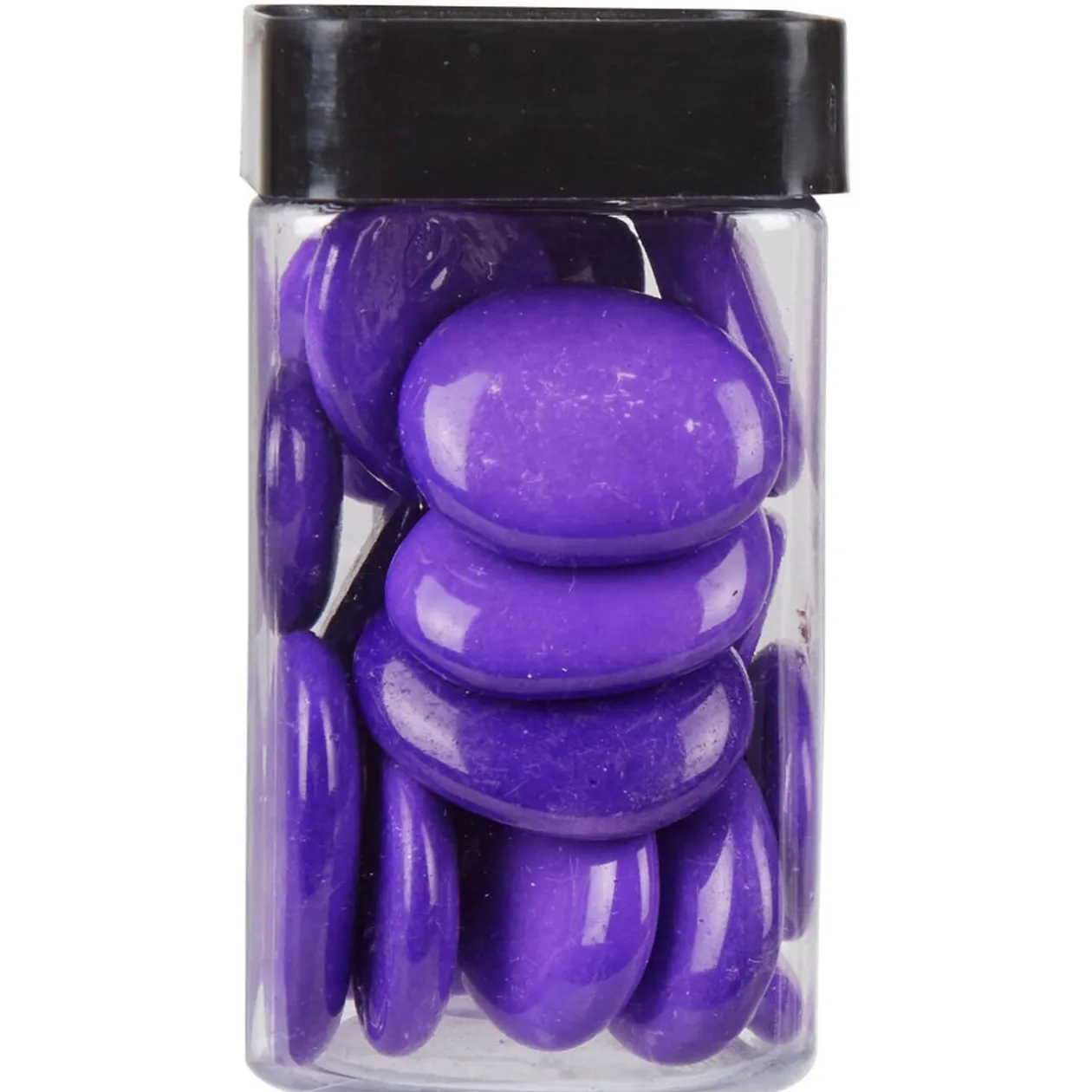 Boîte d’environ 20 galets décoratifs violets, cont. 400 gr, dim. 4×3 cm environ, verre.