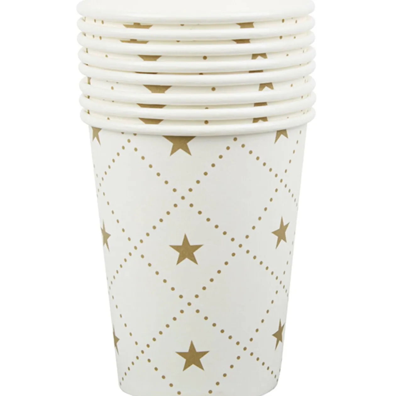 10 gobelets en carton blancs design étoiles dorées, cont. 25 cl.