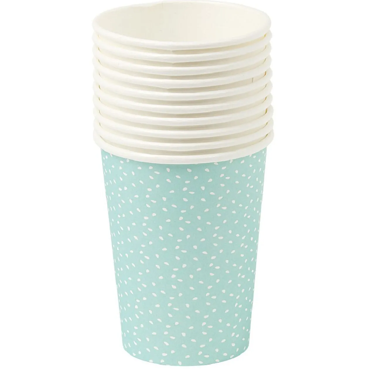 Lot de 10 gobelets en carton au coloris bleu et blanc d’une contenance de 25 cl.