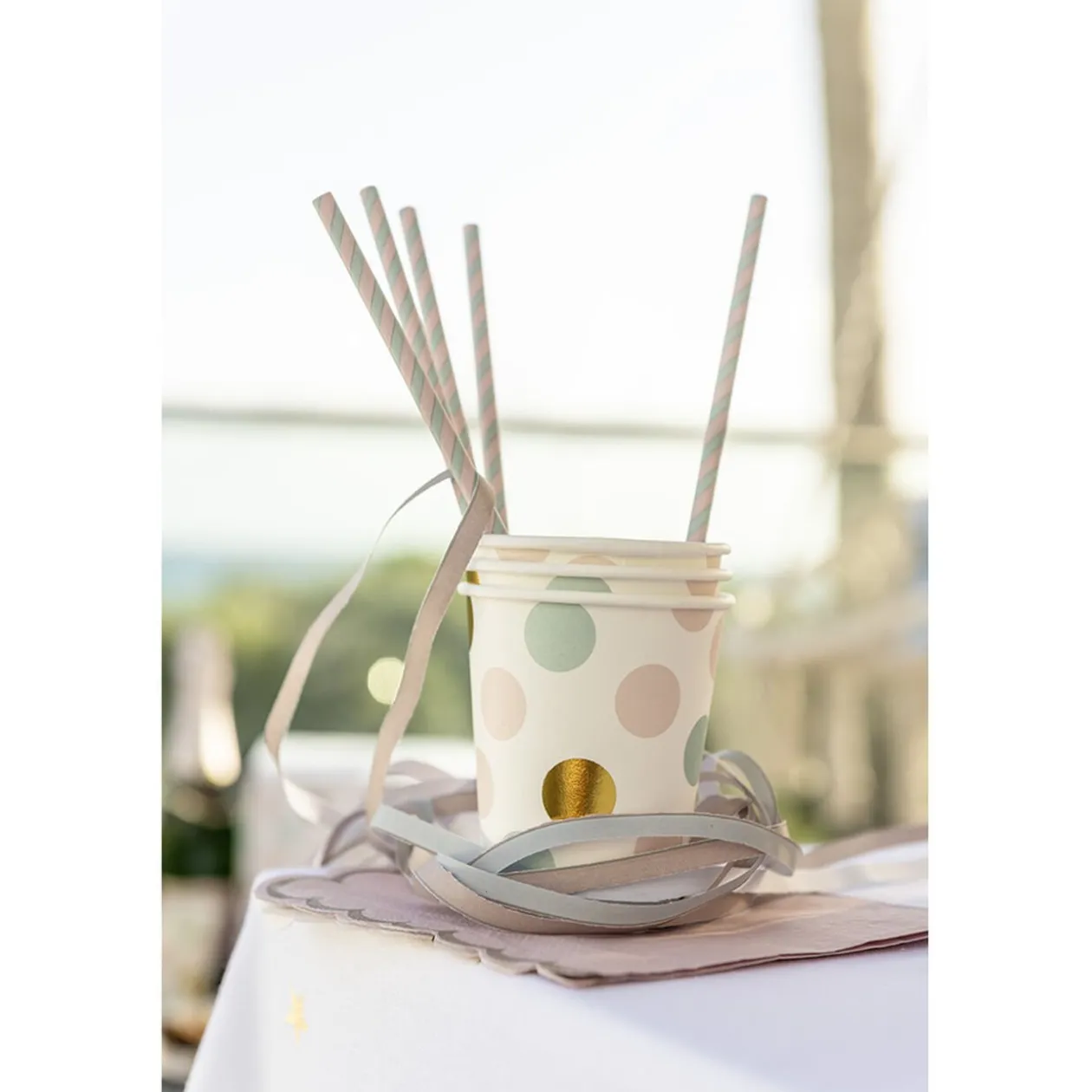 Servez un verre à tous vos invités sans la contrainte de faire la vaisselle. Ce lot de 8 gobelets festifs rose, vert et doré à poids seront parfaits. Santé !