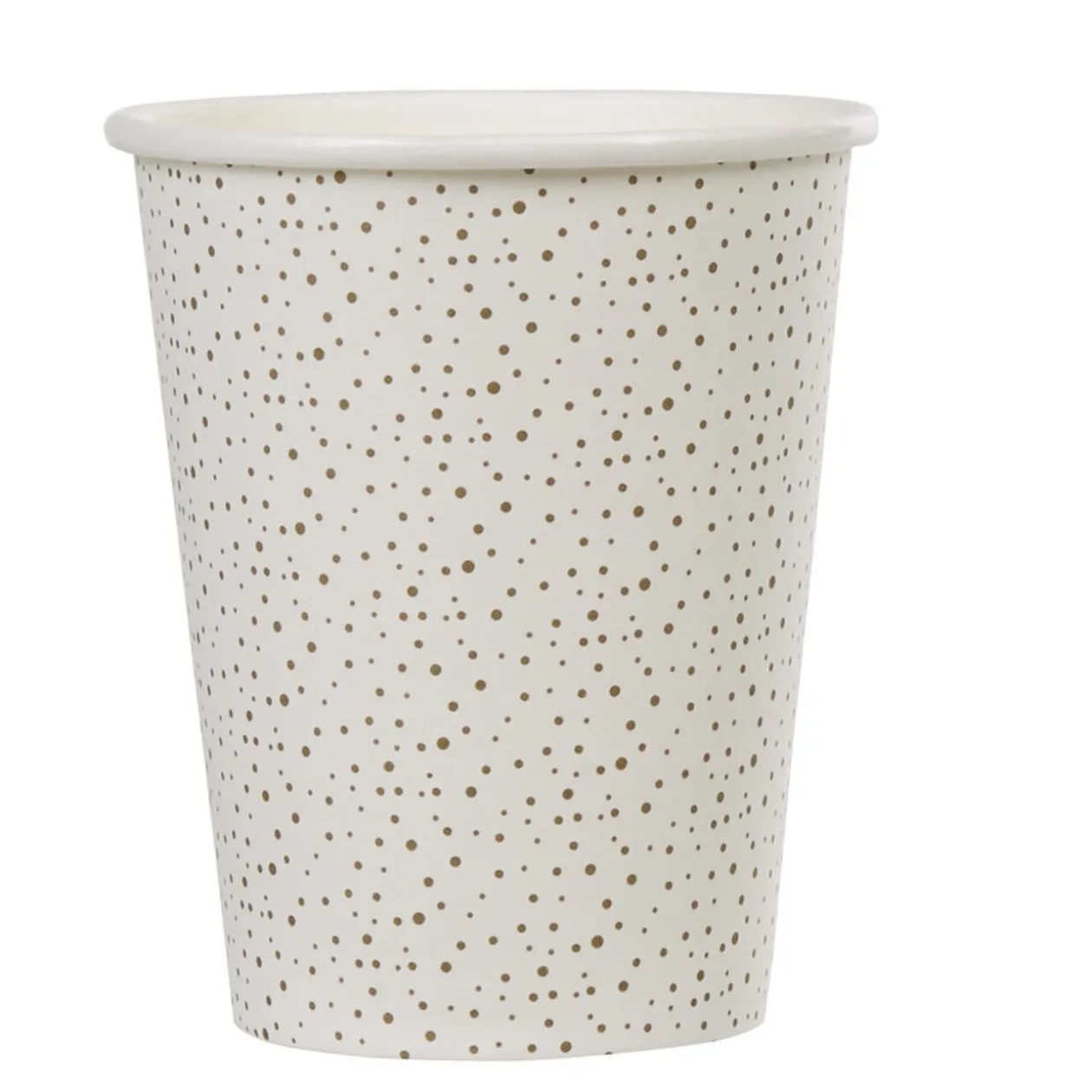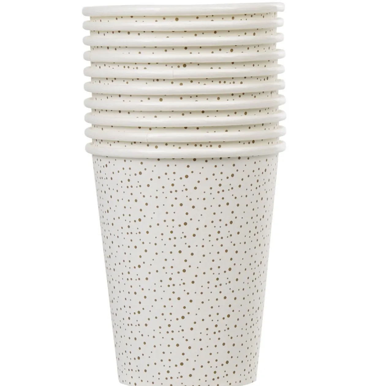 Lot de 10 gobelets jetables blancs avec motifs petits pois dorés, d’une contenance de 25 cl. Idéals pour toutes occasions festives !