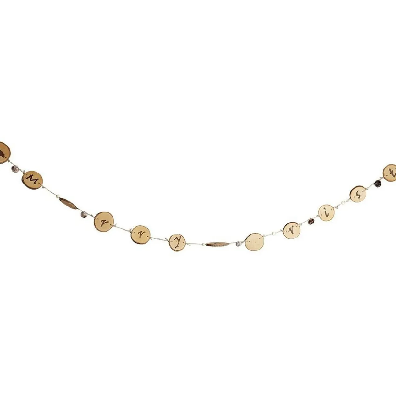 Guirlande Merry Christmas rondin de bois et jute 1,8m
