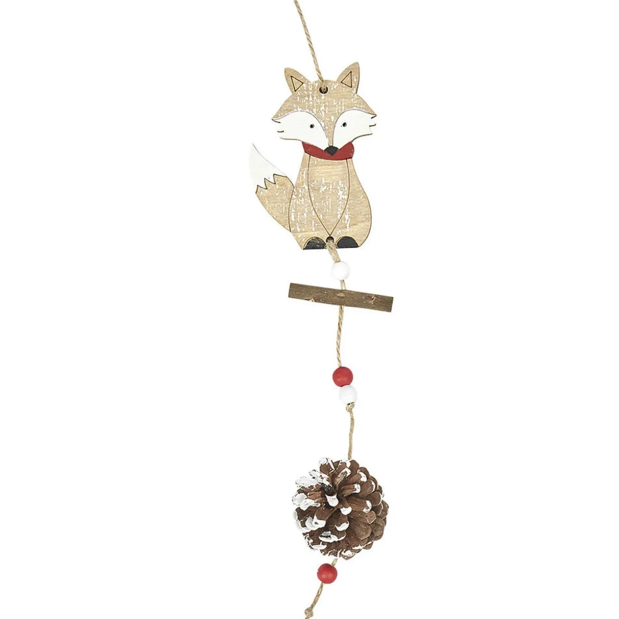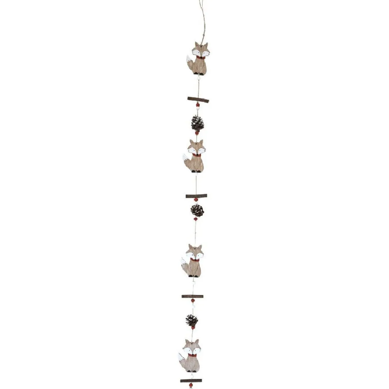 Optez pour cette guirlande de pommes de pin et renards en bois beige et rouge pour donner un esprit nature à la décoration de votre sapin de Noël.