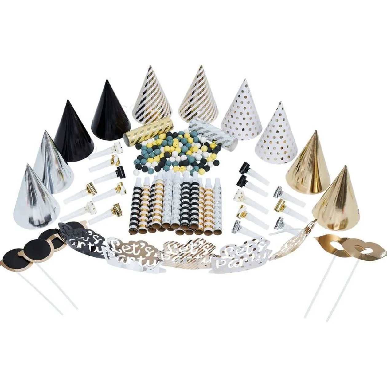 Ce kit de cotillons festifs pour 15 personnes est idéal pour une soirée de folie en famille ou entre amis ! Vous serez parés pour célébrer jusqu’au bout de la nuit.