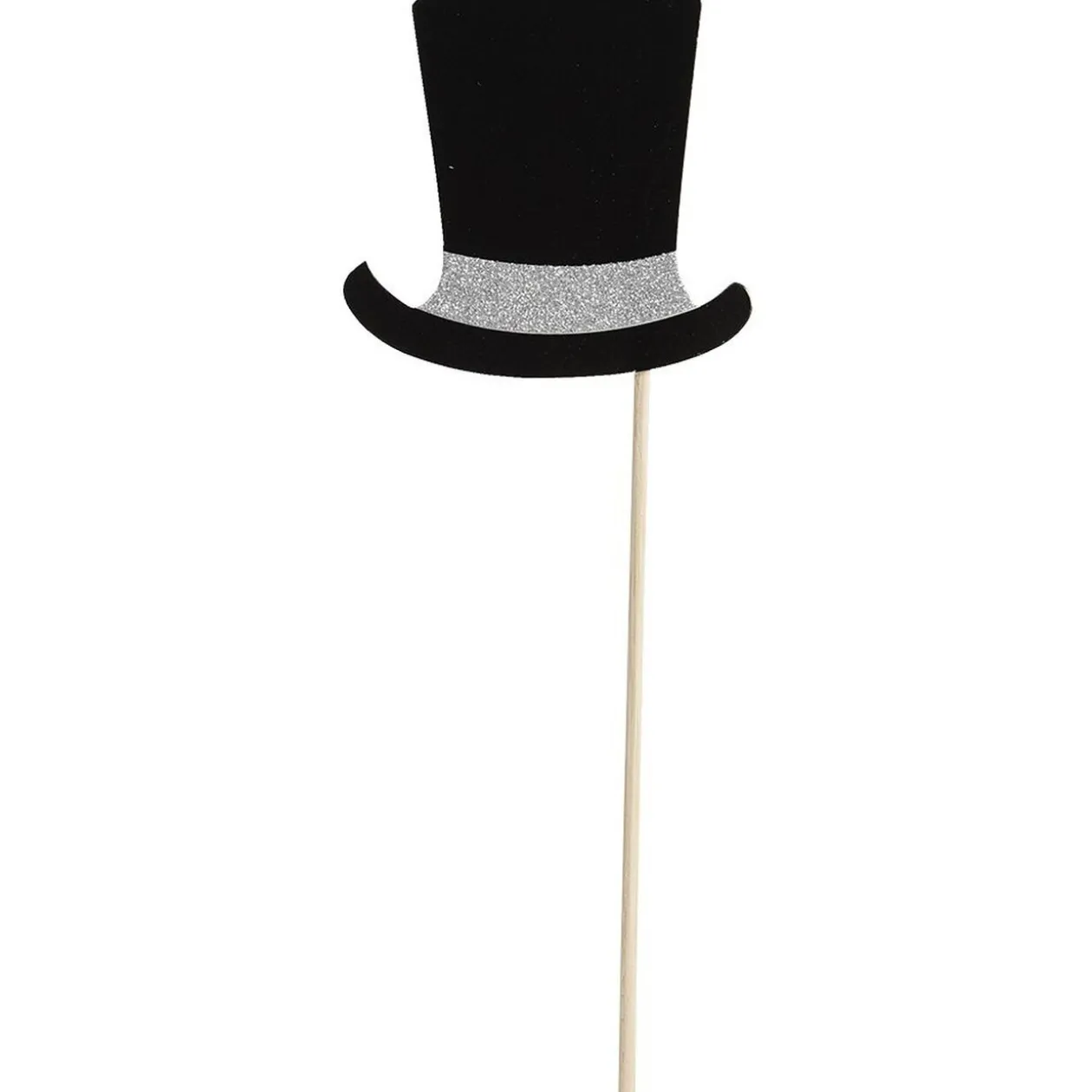Kit photo booth nouvel an de 15 pièces. Comprend différents modèles chapeau, loups, moustaches, flutes de couleurs différentes, noir, doré et argenté.