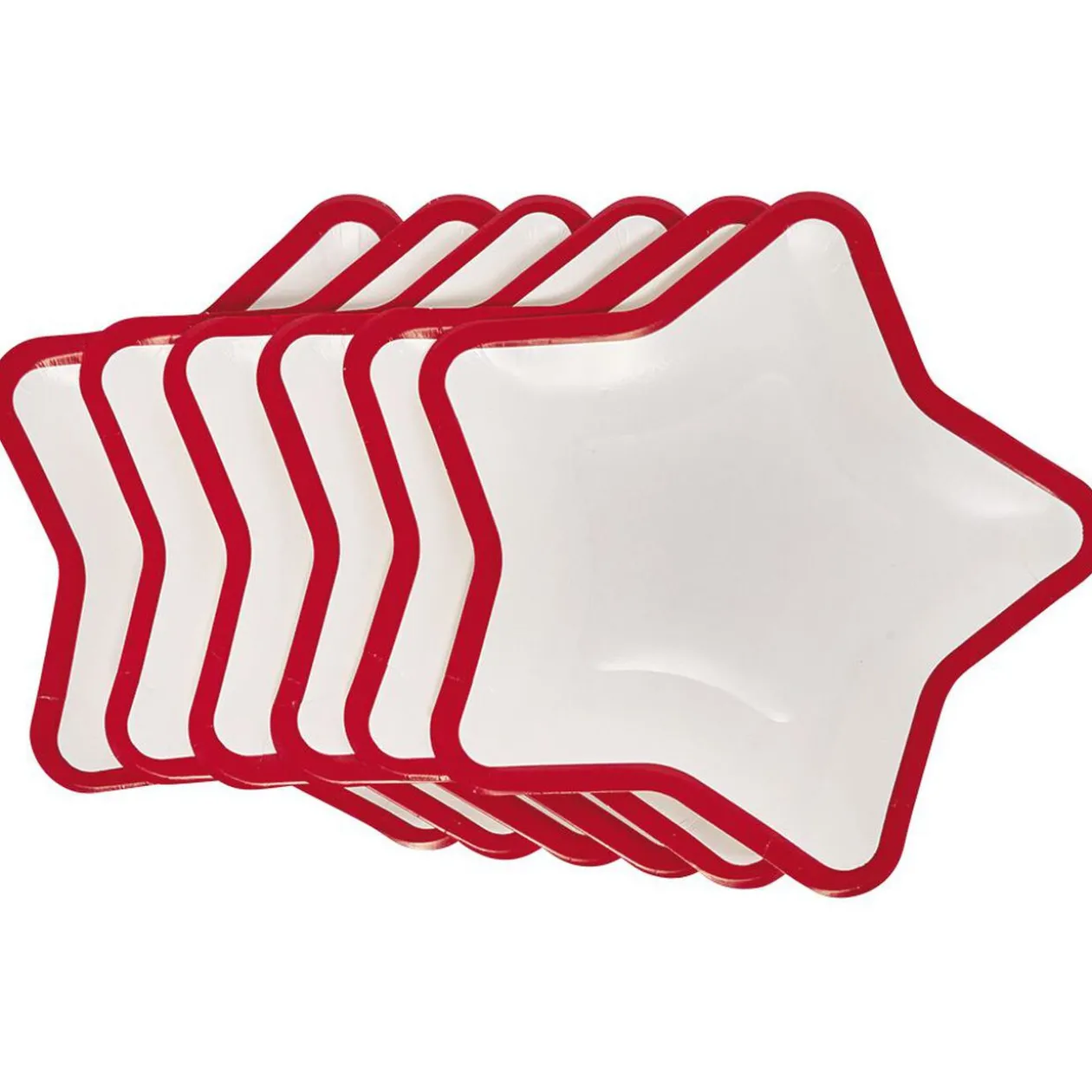 Lot de 10 assiettes en forme d’étoile blanche avec liseré rouge.