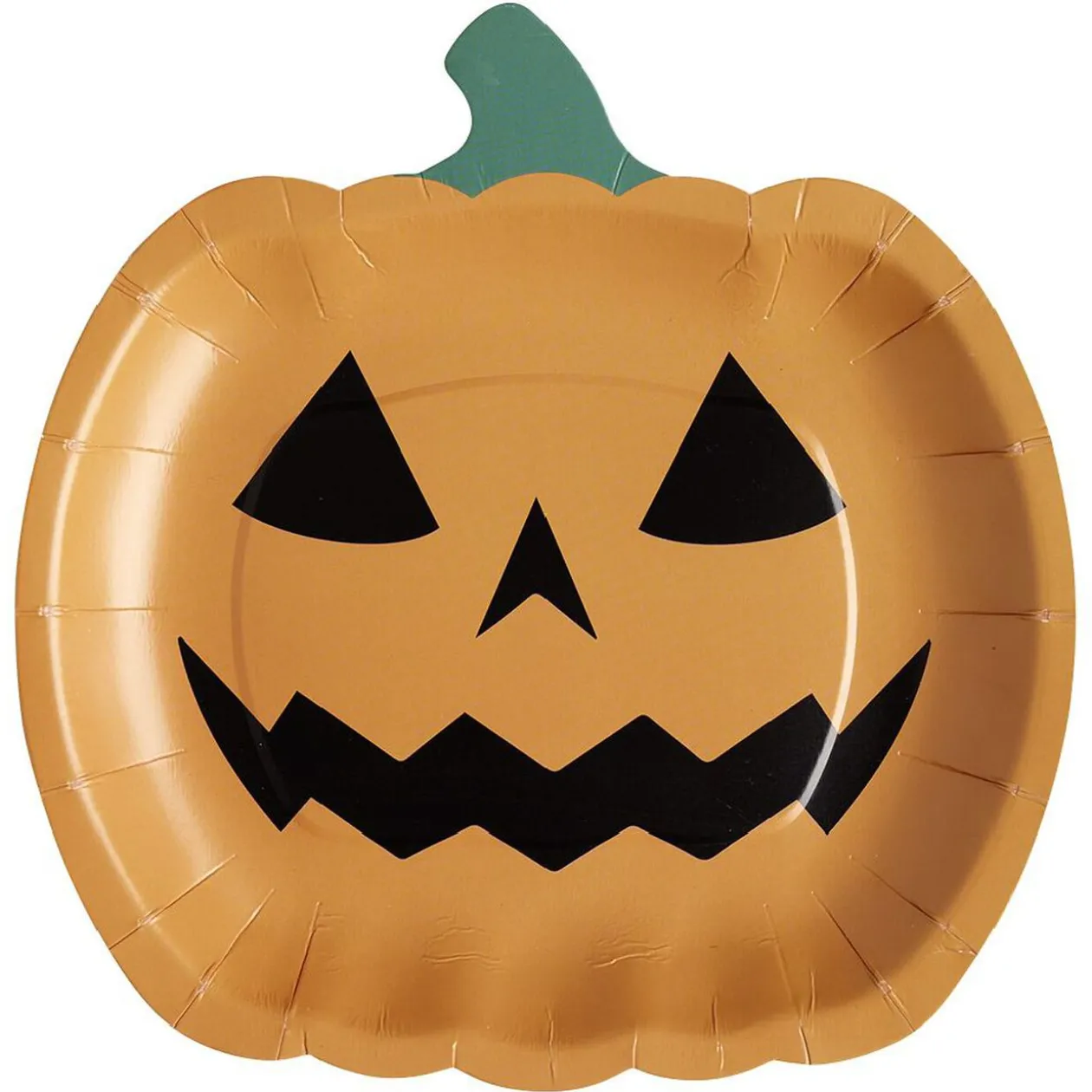 Lot de 10 assiettes en carton design citrouille, idéal pour décorer votre table d’Halloween.