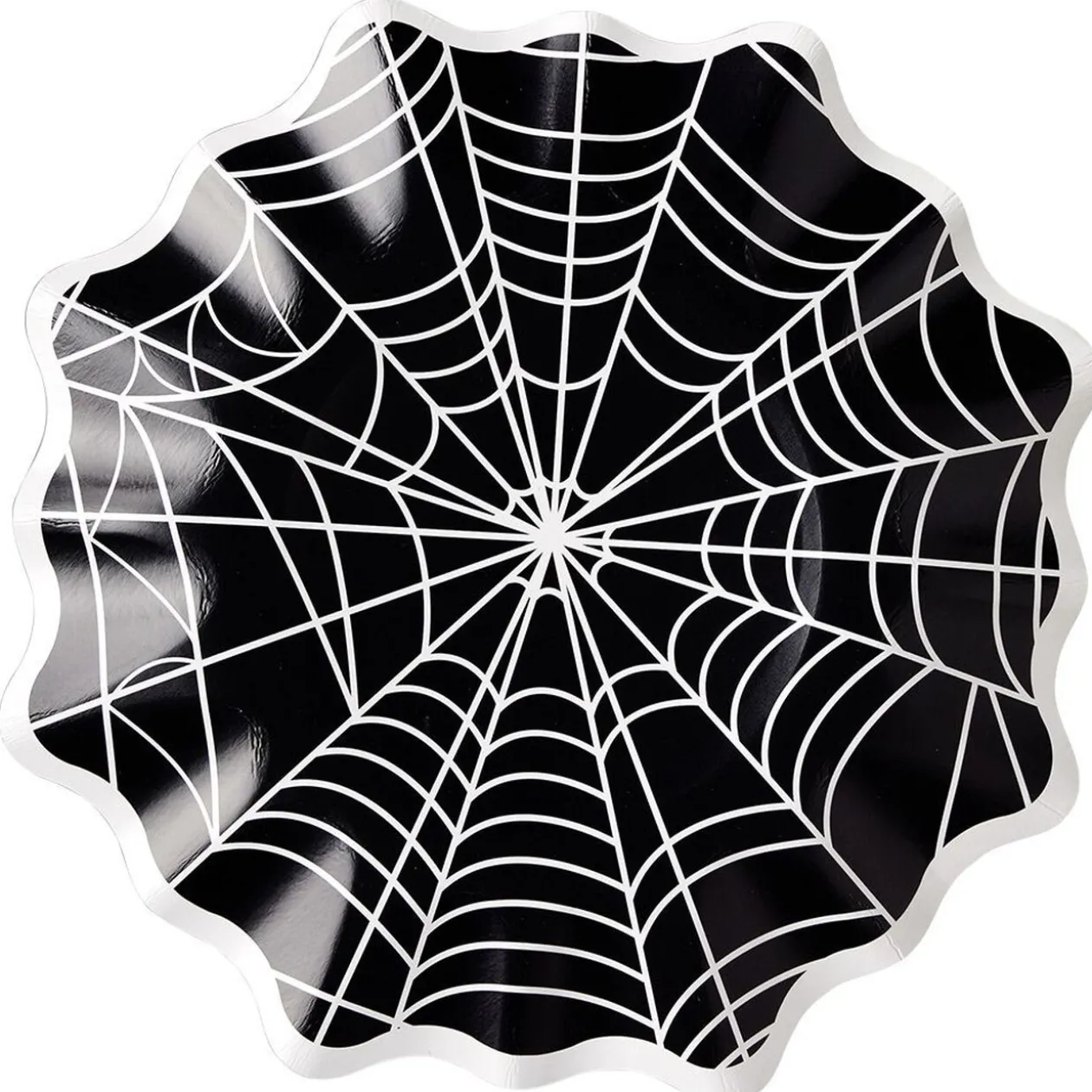 Lot de 10 assiettes en carton design toile d’araignée, idéal pour fêter Halloween.