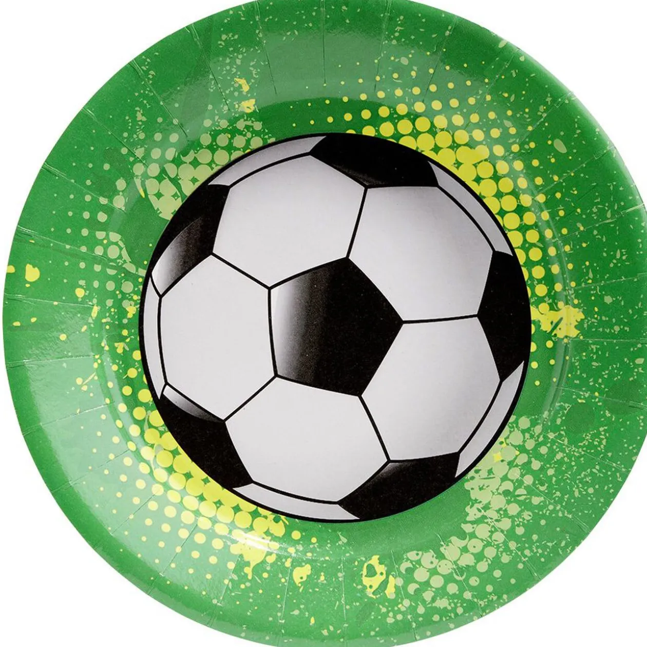 Lot de 10 assiettes en carton imprimé sur le thème de la Coupe du Monde de Football. Idéal pour décorer vos soirées de match!