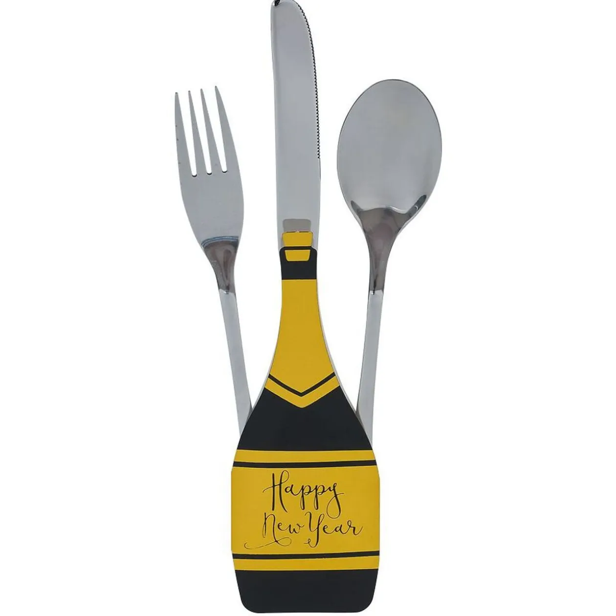 Pour votre table de fête à l’occasion du réveillon du nouvel an, optez pour cette pochette à couverts en forme de bouteille avec inscirption « Happy New Year ».