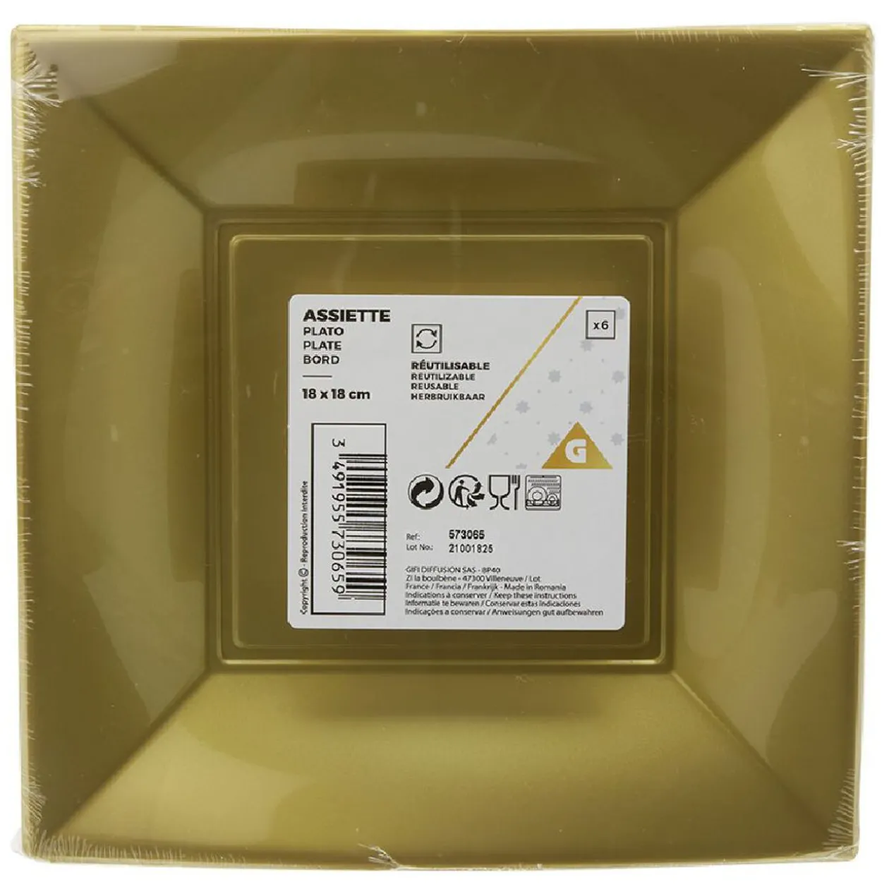 Lot de 6 assiettes carrées en plastique doré pour déguster vos desserts dans un esprit de fête !