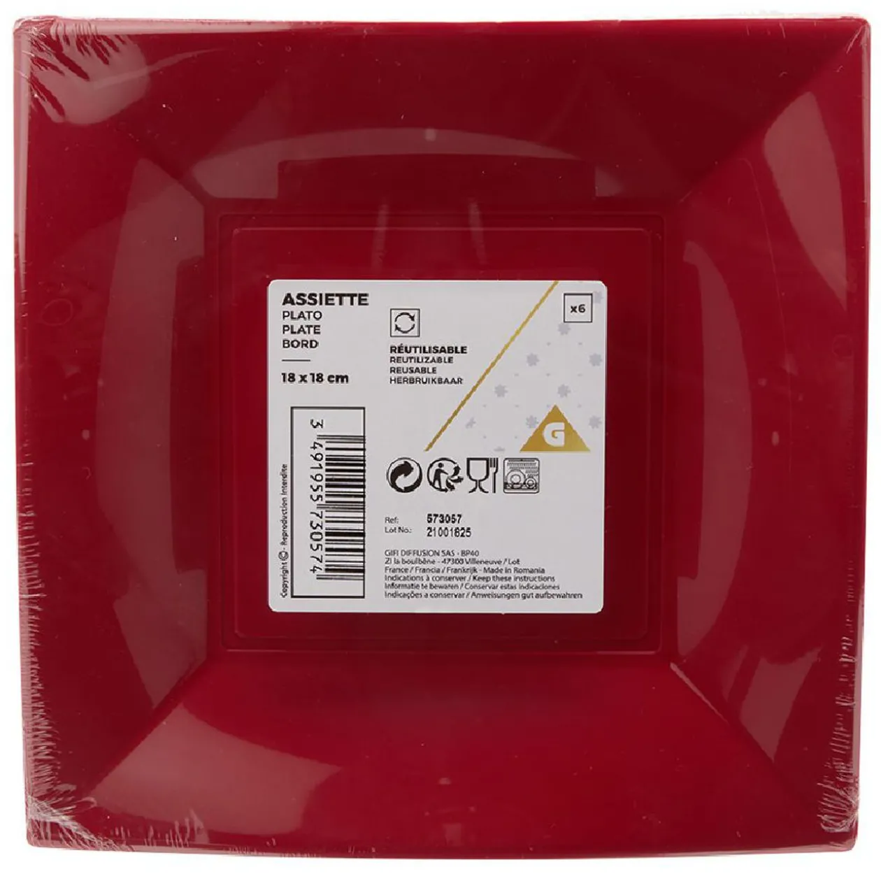 Lot de 6 assiettes carrées en plastique uni rouge pour déguster vos desserts dans un esprit de fête !