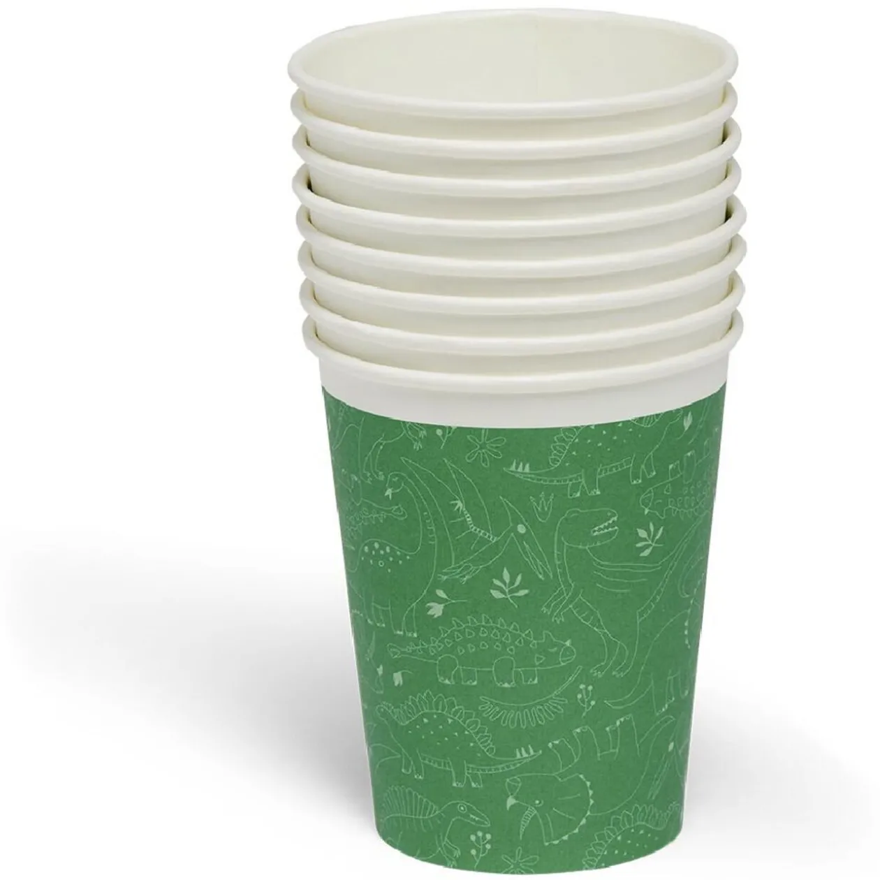 Ce lot de 8 gobelets jetables en carton à motif dinosaure sera parfait pour servir vos boissons avec une touche festive et conviviale !