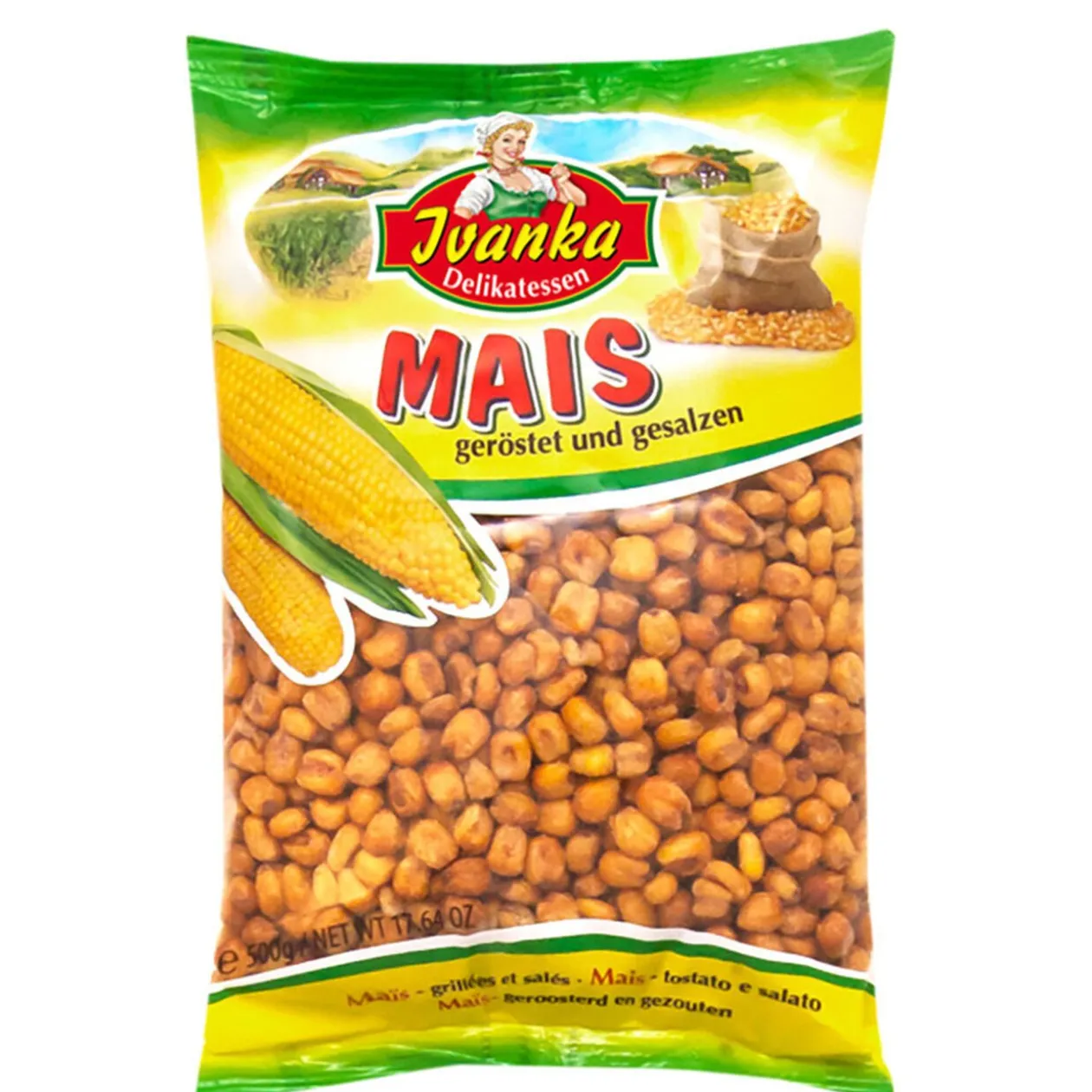 Des grains de maïs grillés et salés dans un paquet au format généreux.