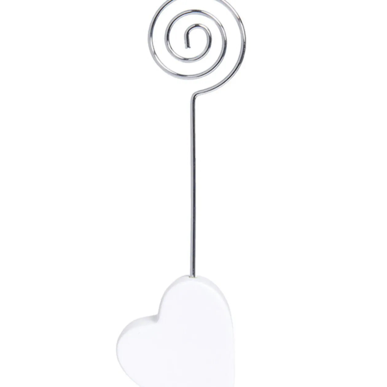Marque place mariage en forme de coeur blanc, dim. h.13×4 cm, résine et métal.