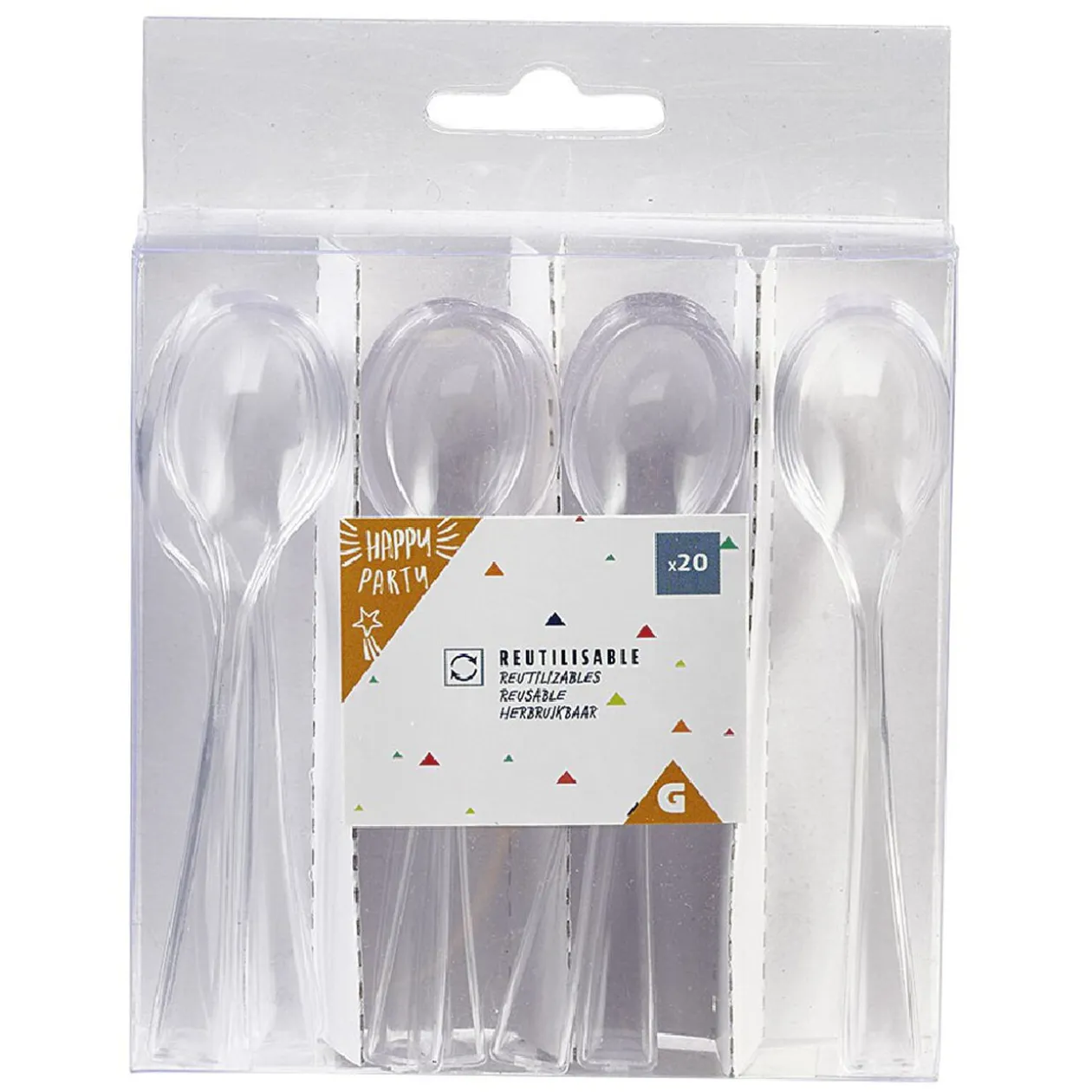 Lot de 20 mini-cuillères blanches en plastique réutilisable.