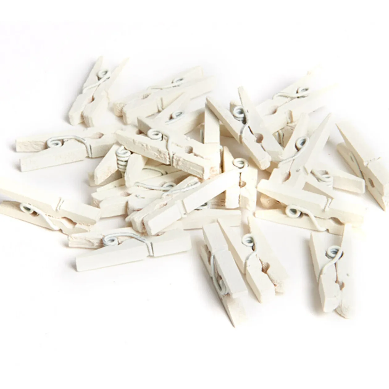 24 minis pinces ivoires, L. 2,5 cm, MDF (panneau de fibres de bois). Peut s’utiliser en décoration de table ou marque-place pour mariage ou autre évènement.