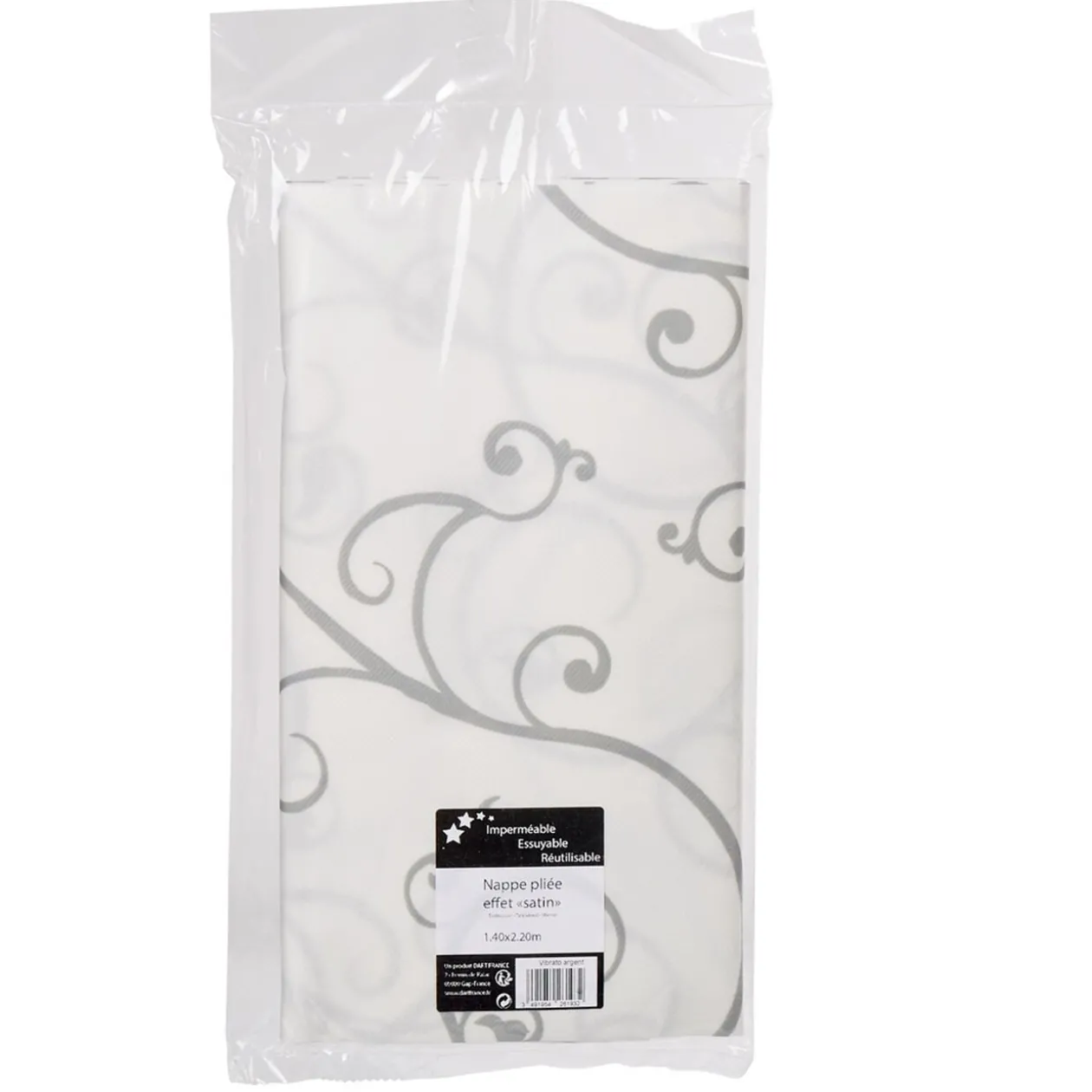 Nappe en papier de couleur blanche au motif branche argenté effet satin.