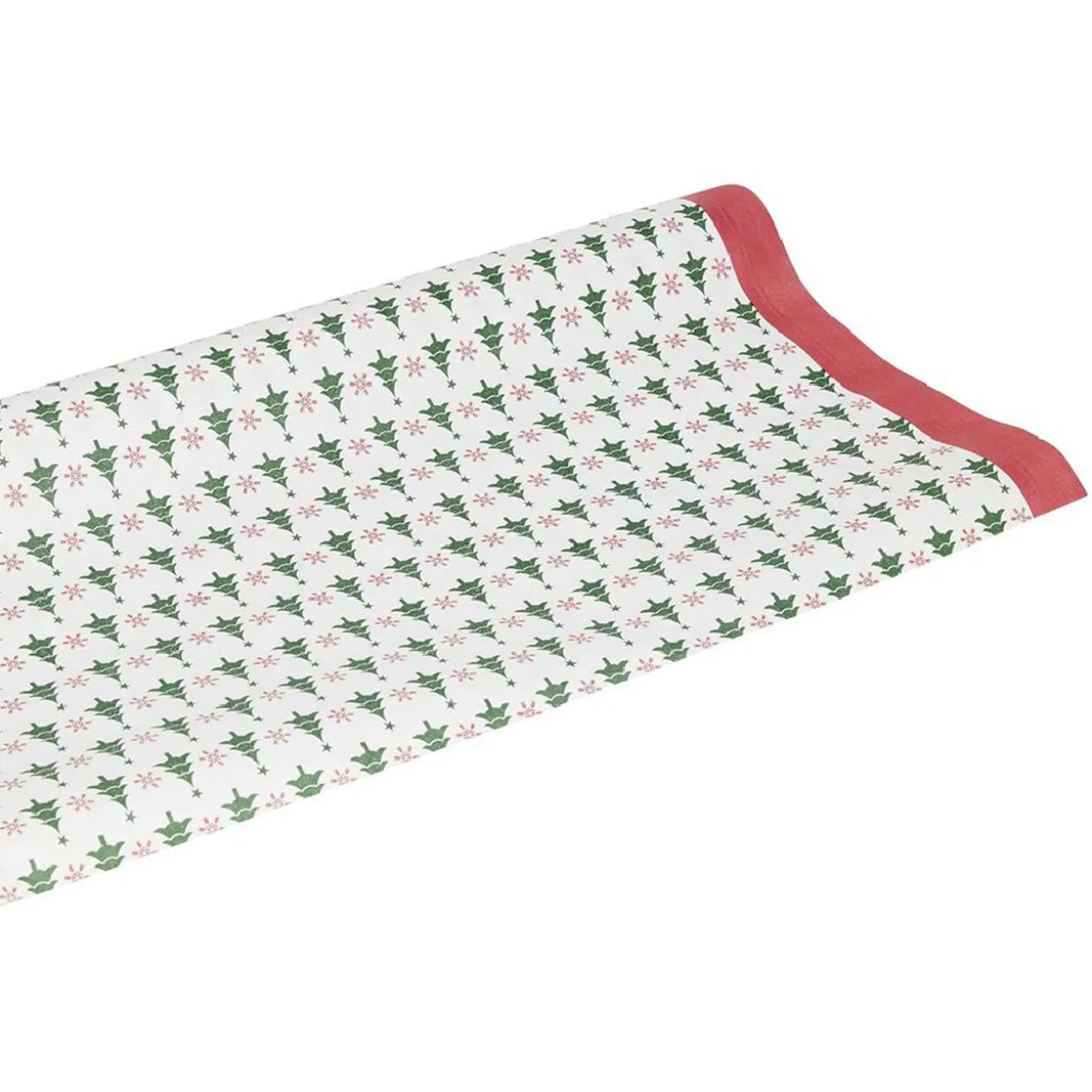 Nappe en papier blanc à motif sapin de Noël, un allié décoration et protection pour votre table à l’occasion des fêtes de fin d’année.