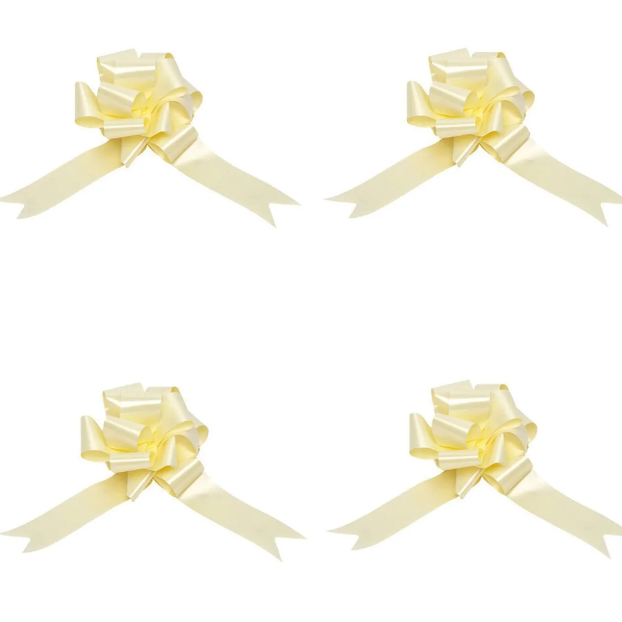 4 noeuds à tirer ivoire pour décorer les voitures de mariage, dim. 5×1,7 cm, polyester.