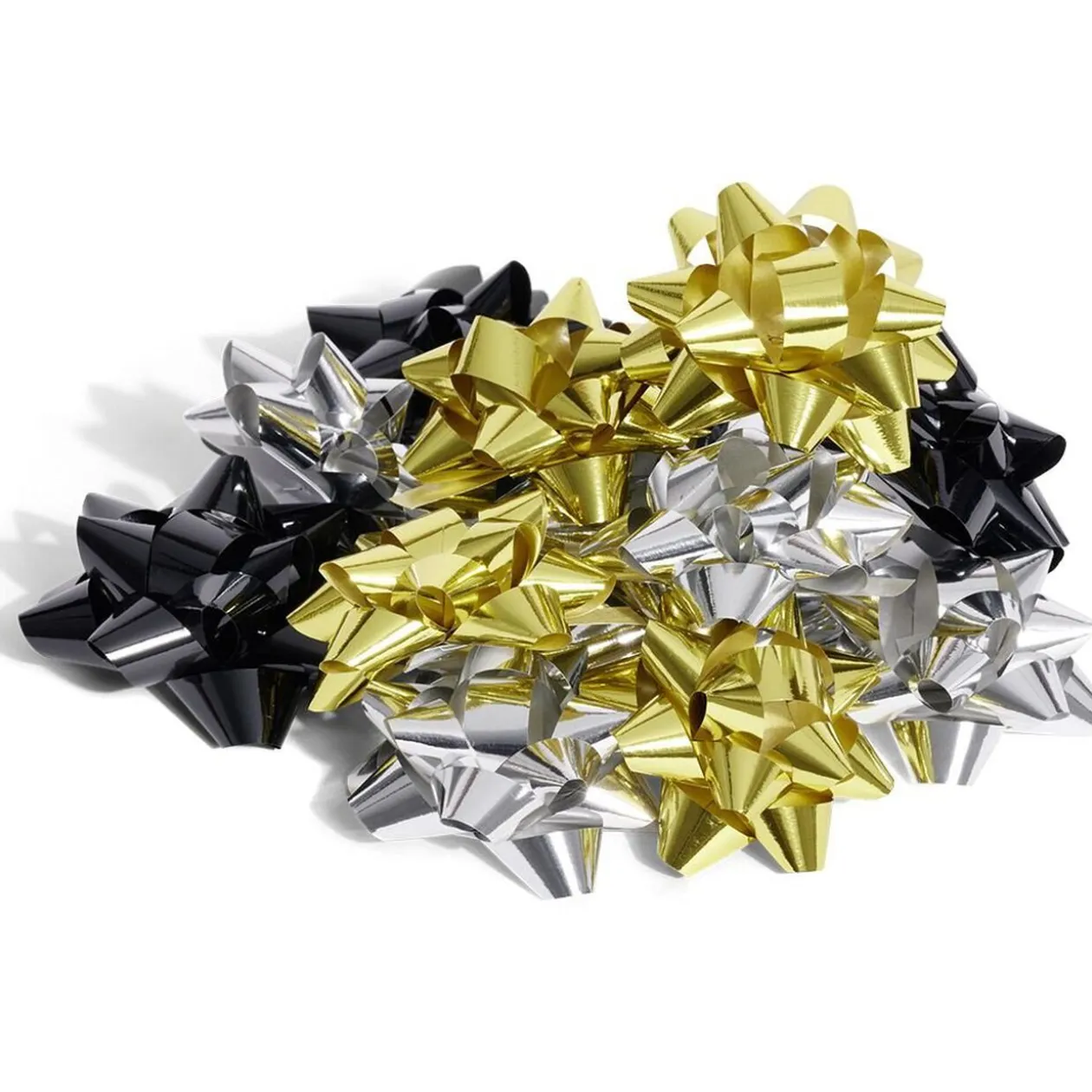 Boîte cartonnée comprenant 12 noeuds en bolduc de couleurs et tailles différentes, idéal pour peaufiner l’emballage de vos cadeaux.