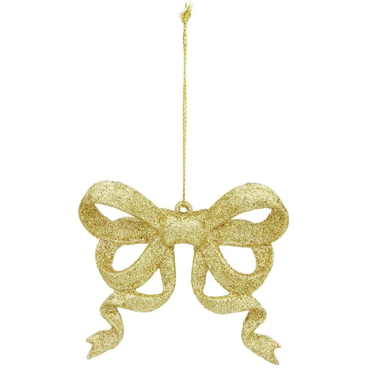 Noeud de Noël blanc ou doré à paillettes à accrocher sur votre sapin.