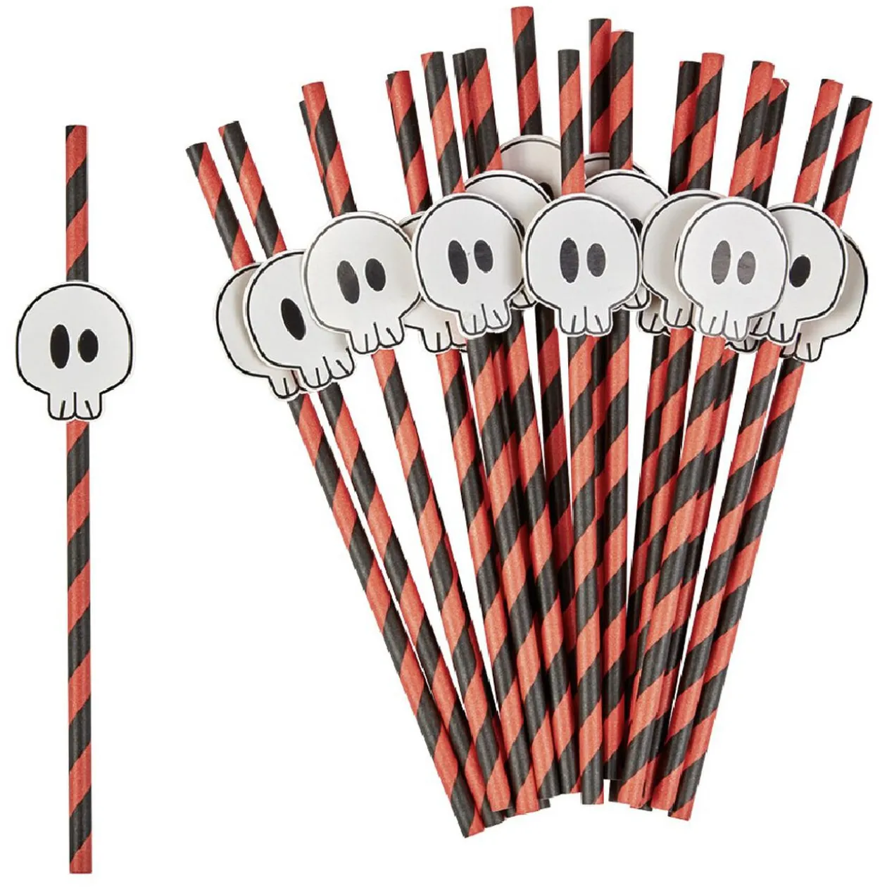 Lot de 20 pailles noires et rouges avec fantaisie crâne.
