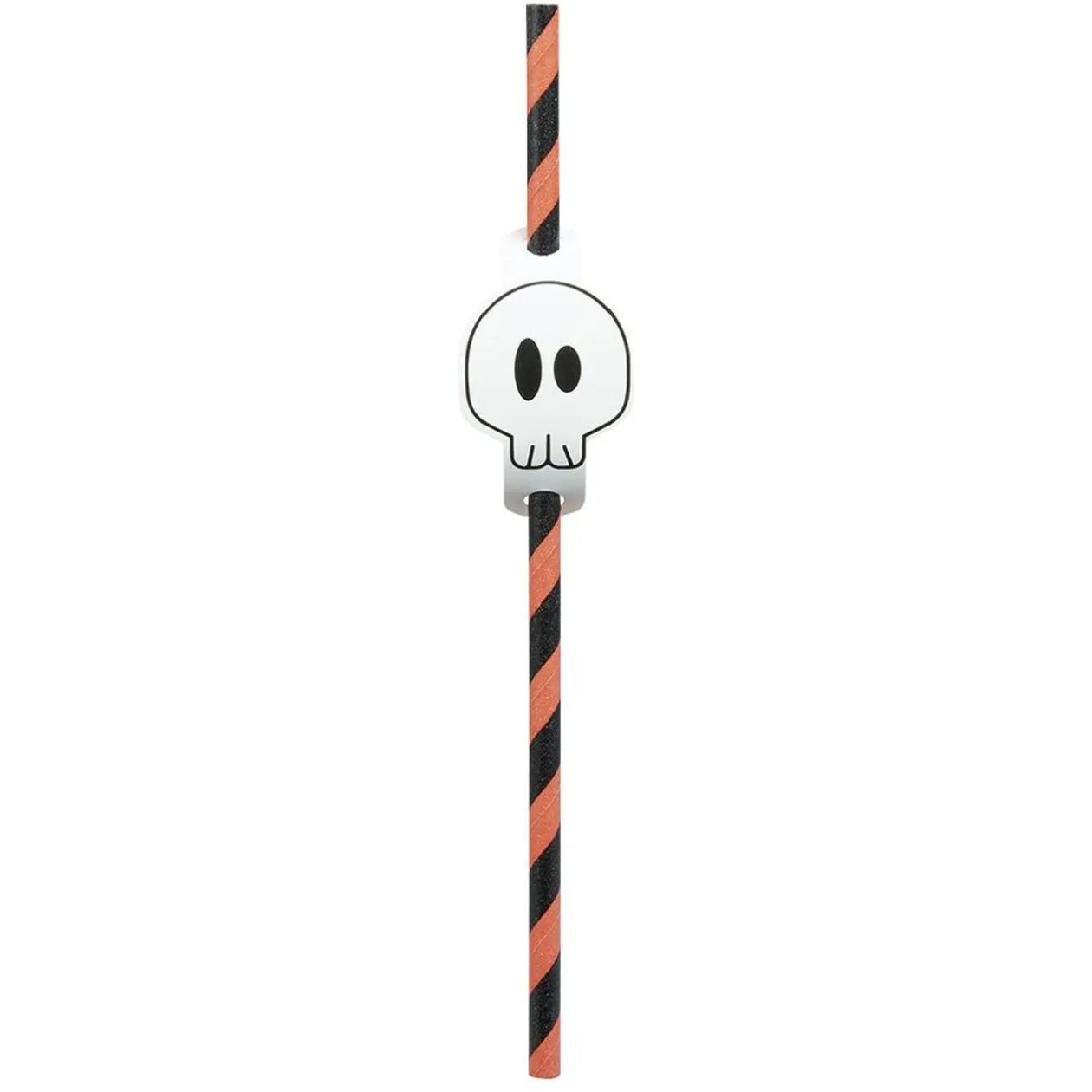 Contient 20 pailles oranges tête de mort pour accompagner vos coktails.<b