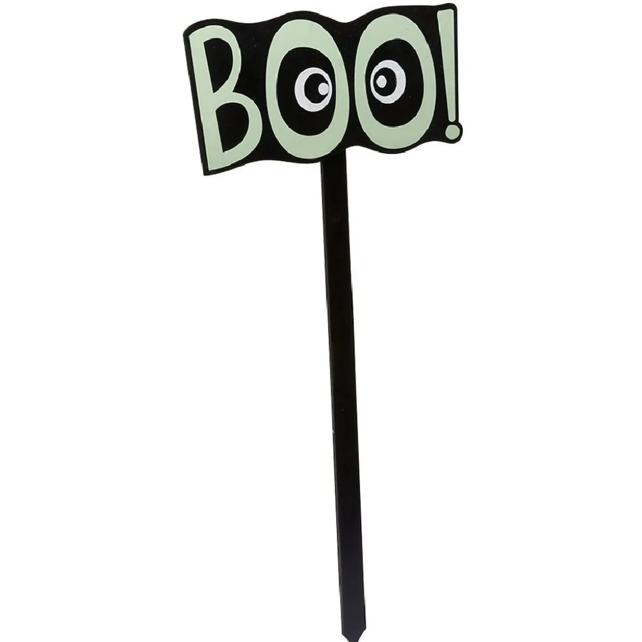 Une pancarte boo! danger keep out en bois à planter dans votre jardin pour Halloween.<b