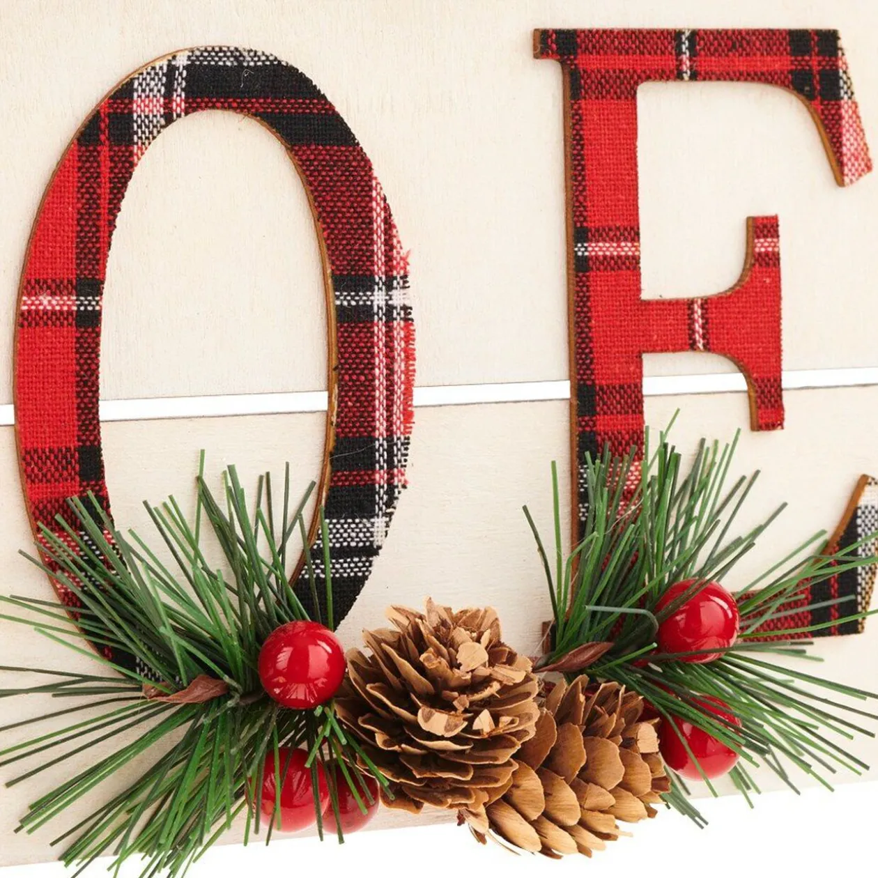 Sublimez votre décoration de Noël avec ce panneau en bois à suspendre. Cette pièce unique fera ressentir l’esprit de Noël par ses branches de gui ainsi que les pommes de pin qui y sont attachées. Vous pouvez l’accrocher grâce à un fil d’attache. Il vous est également possible de pendre cette décoration sur tous vos murs.