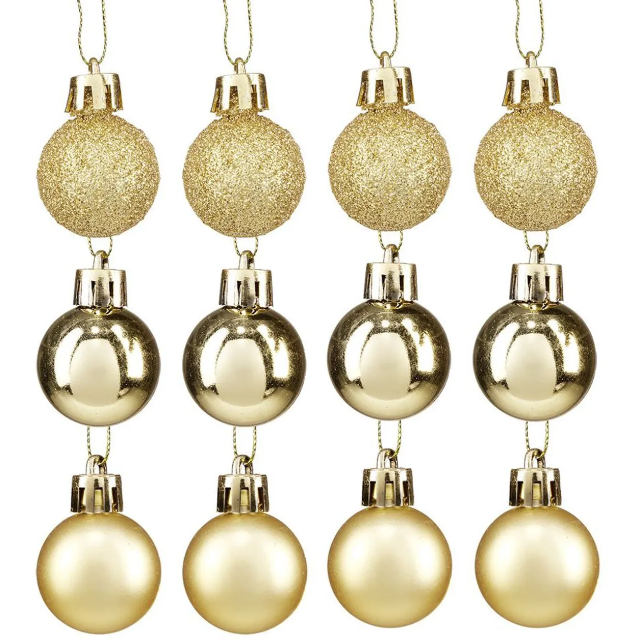 Lot de 12 boules de Noël pailletées, mates et brillantes de couleur dorée.