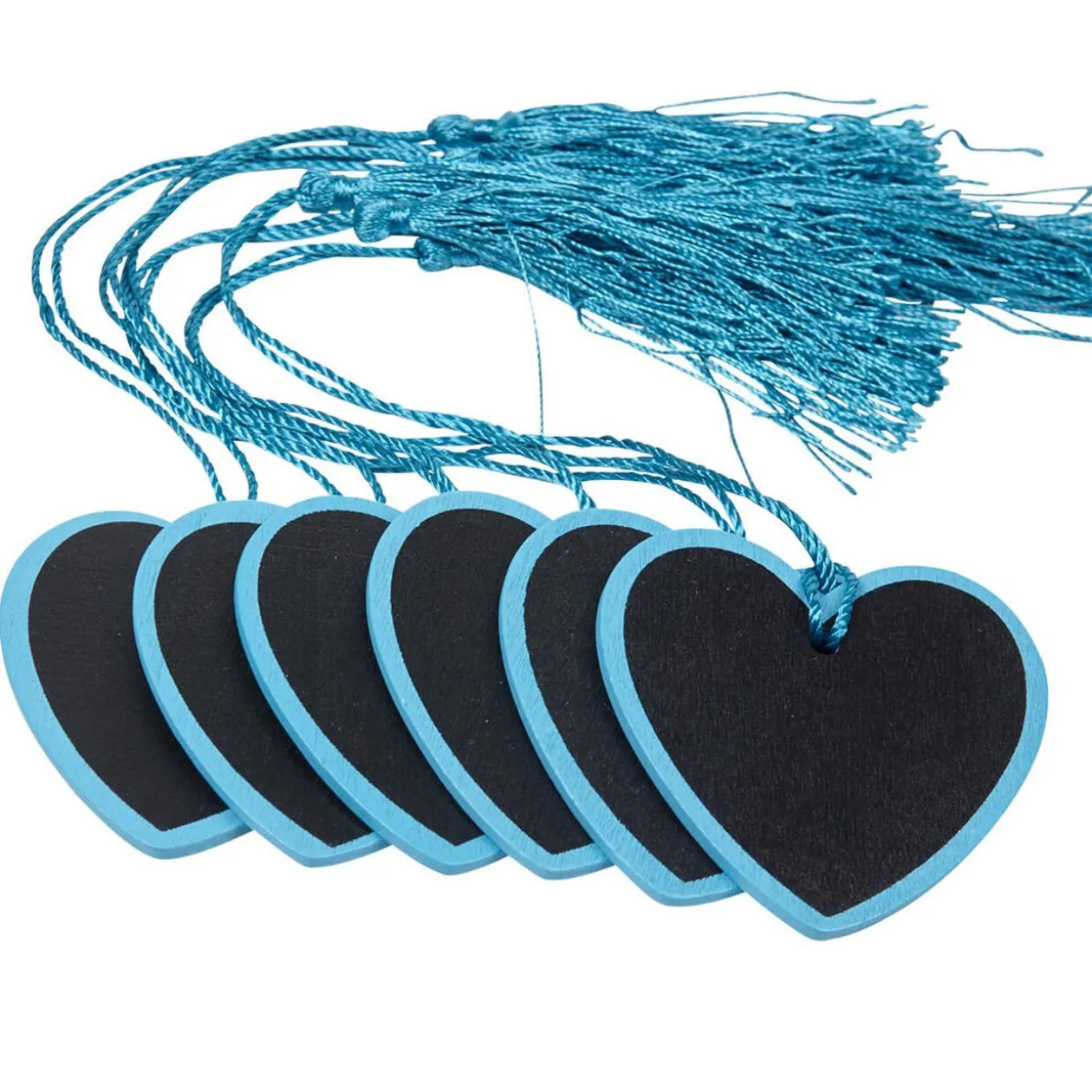 6 porte-noms ardoise en forme de coeur bleu turquoise, dim. 16x18x0,25 cm, MDF (panneau de fibres de bois).