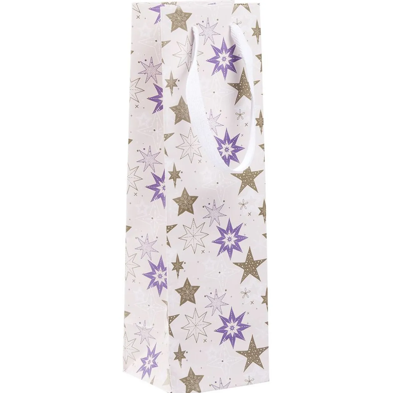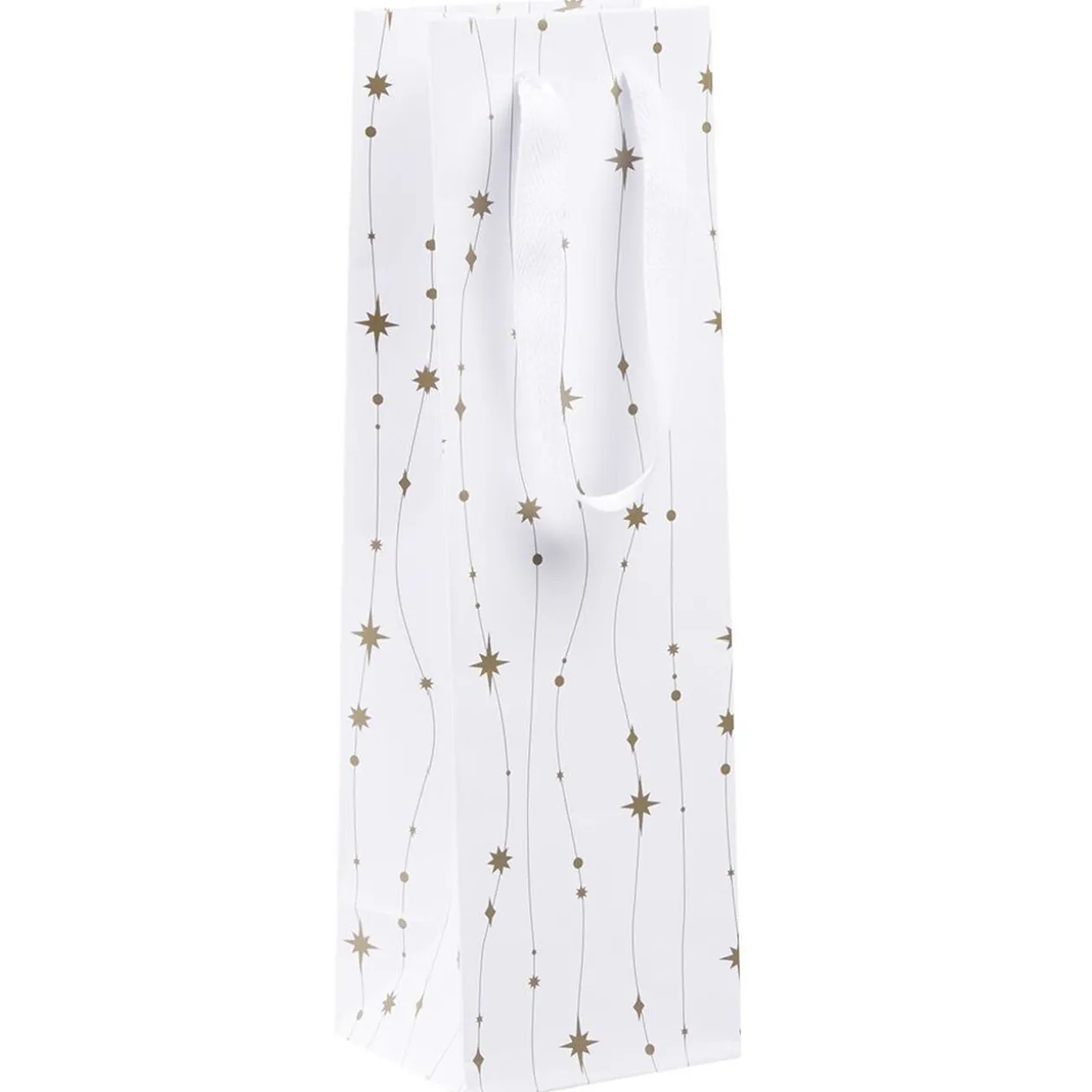 Sac cadeau pour bouteille de vin en papier imprimé design Noël Doré.