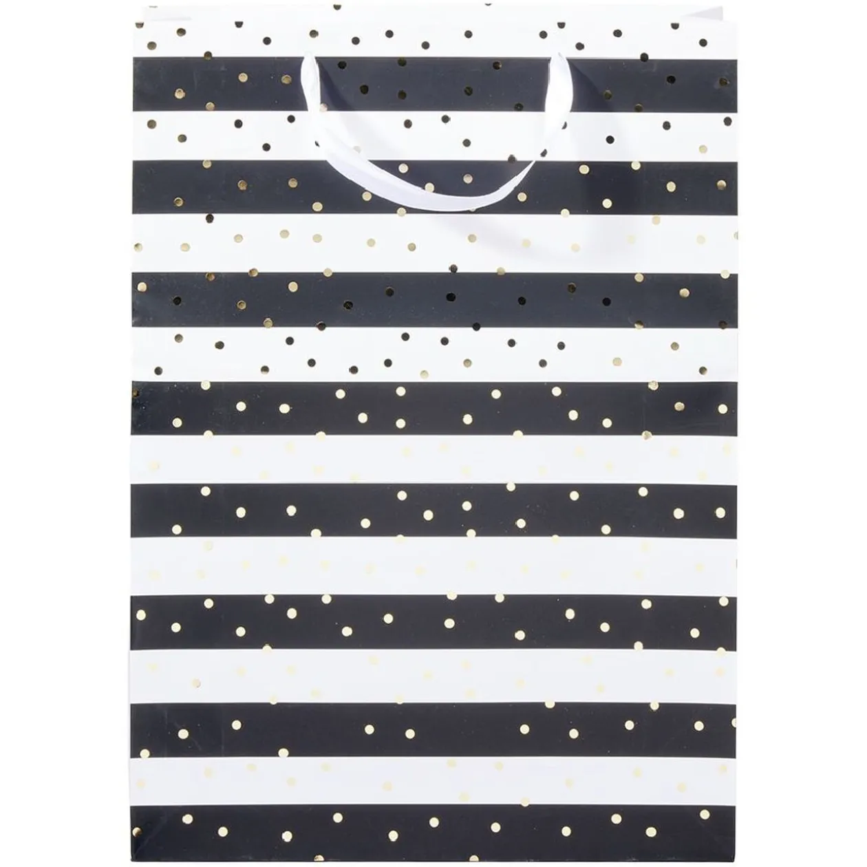 Emballez tous vos présents avec ce sac cadeau XL de couleur blanc et noir aux motifs pois dorés.