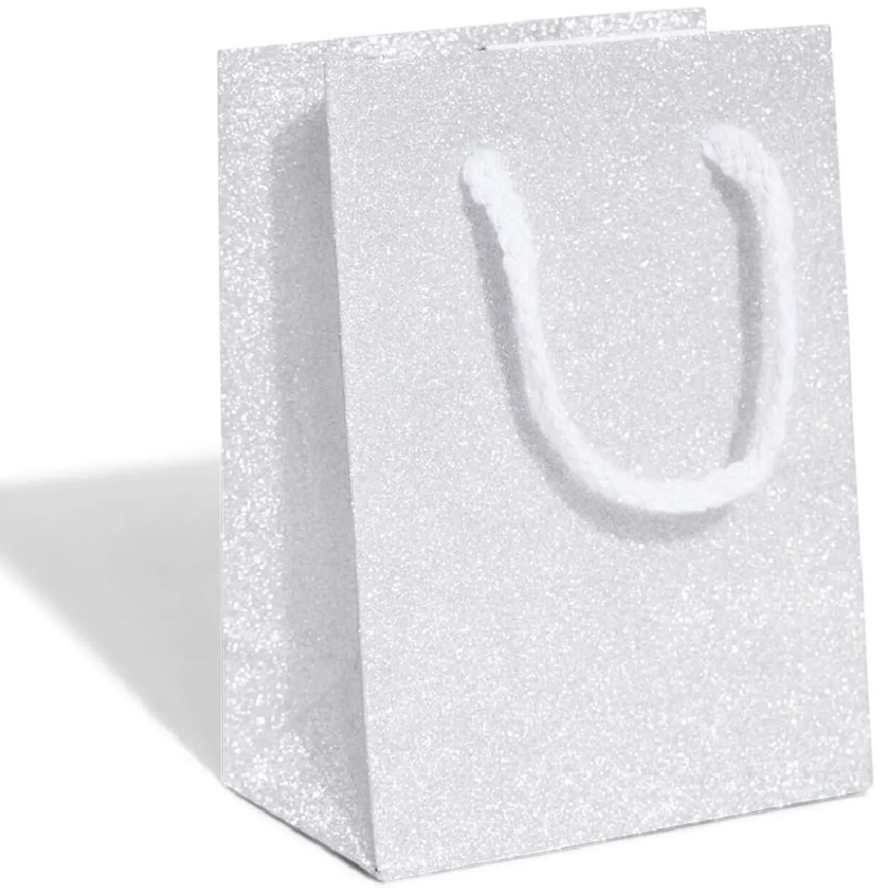 Ce sac cadeau uni argenté pailleté ou bleu à motifs flocons blancs sera idéal à l’occasion de Noël.