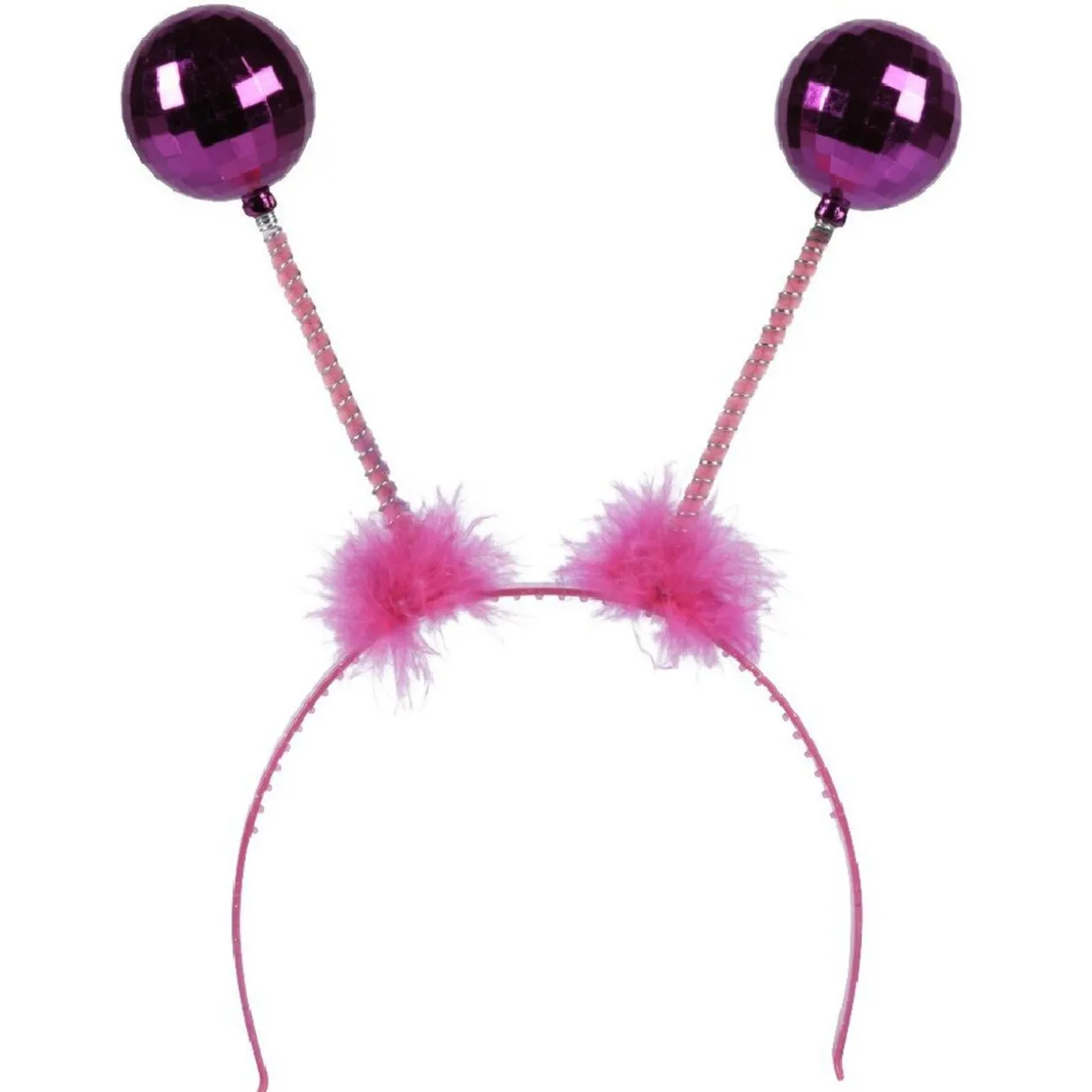 Serre-tête avec plumes fantaisie et antenne boules à facette.