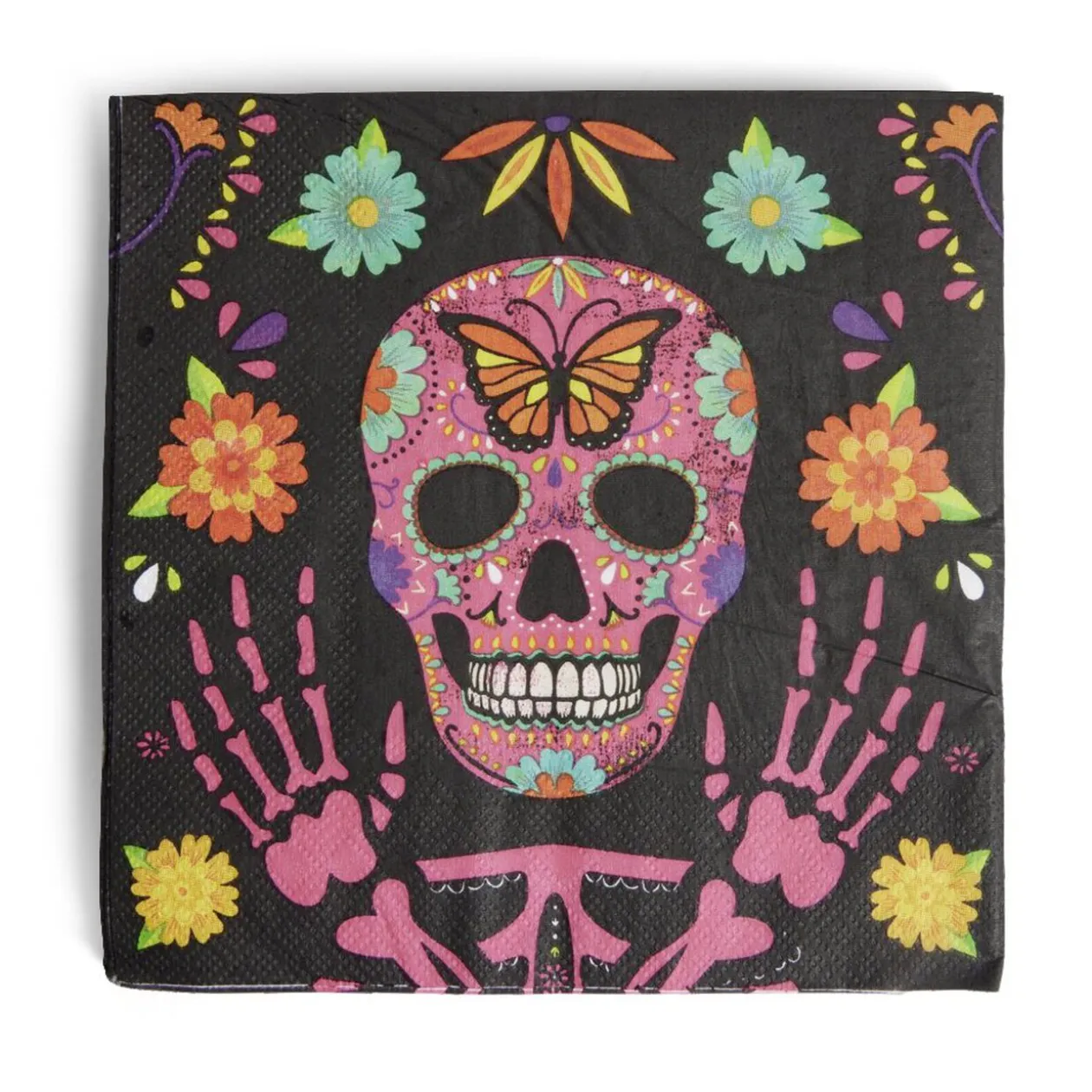 Serviette de table Halloween tête de mort mexicaine noir et multicolore x16
