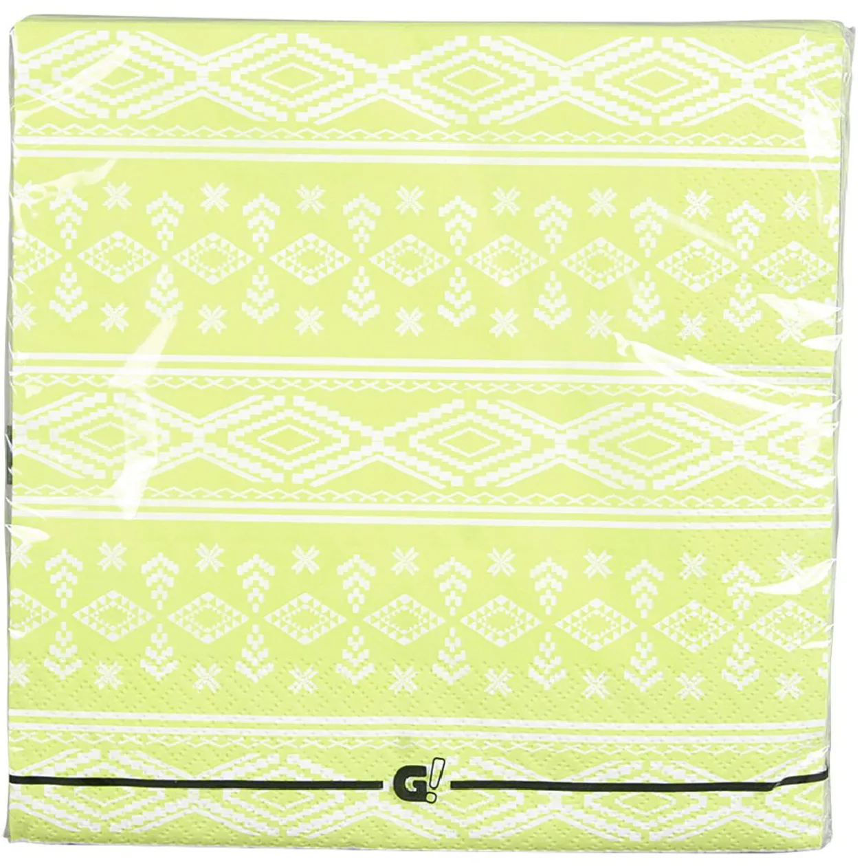 Lot de 20 serviettes en papier motifs géométriques de couleur blanche et verte.