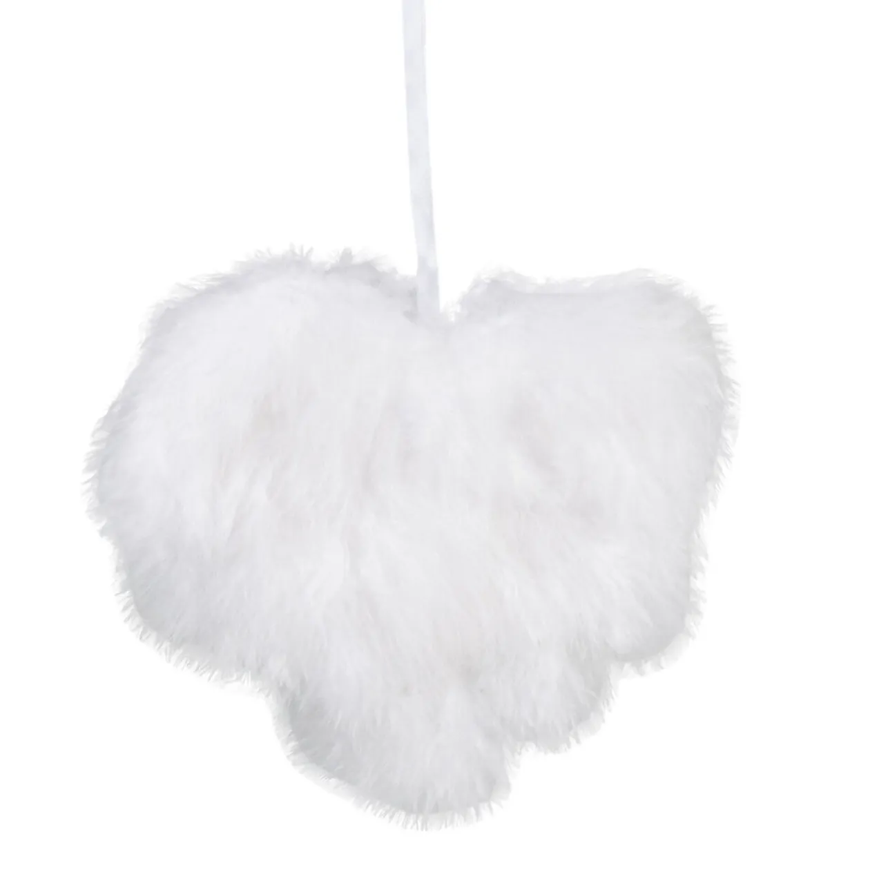 Coeur blanc à plumes, décoration de Noël à suspendre, dim. 17×1,5×14 cm.