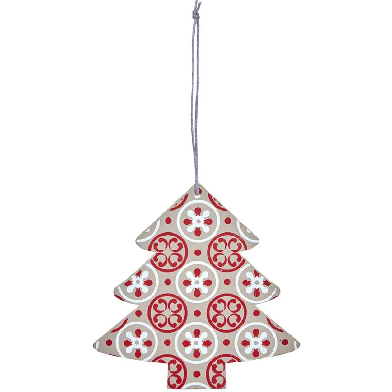 Optez pour une décoration vintage pour votre sapin avec cette suspension en bois imprimé rouge ou vert.