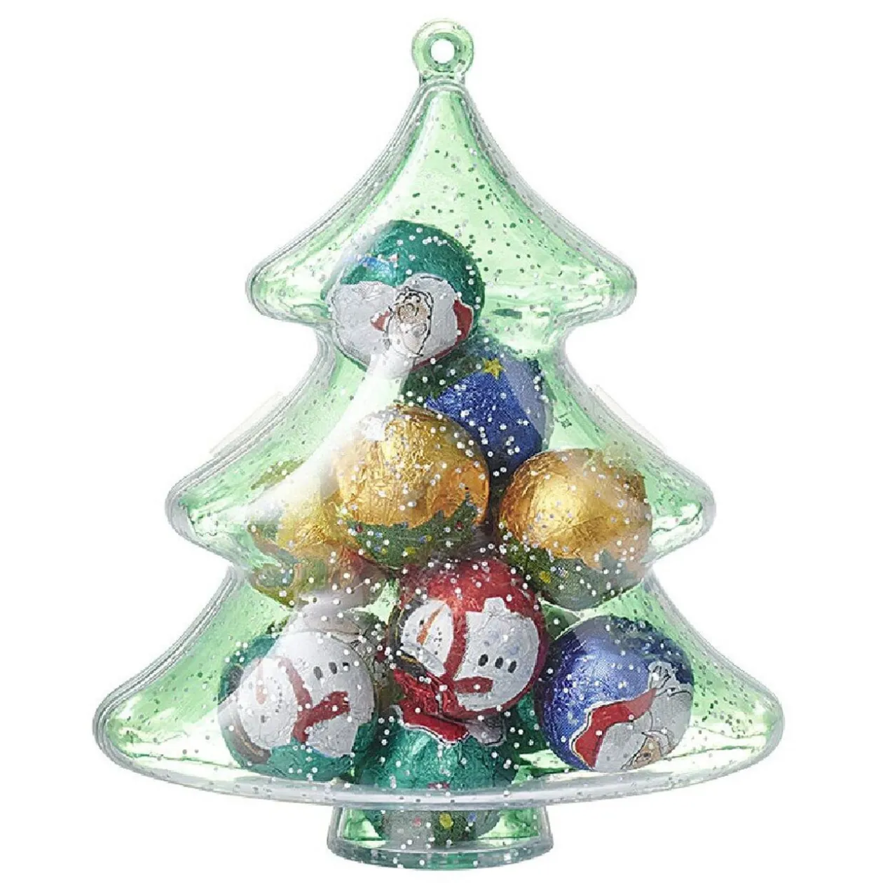 Suspension de Noël en plastique remplie de confiseries gourmandes.