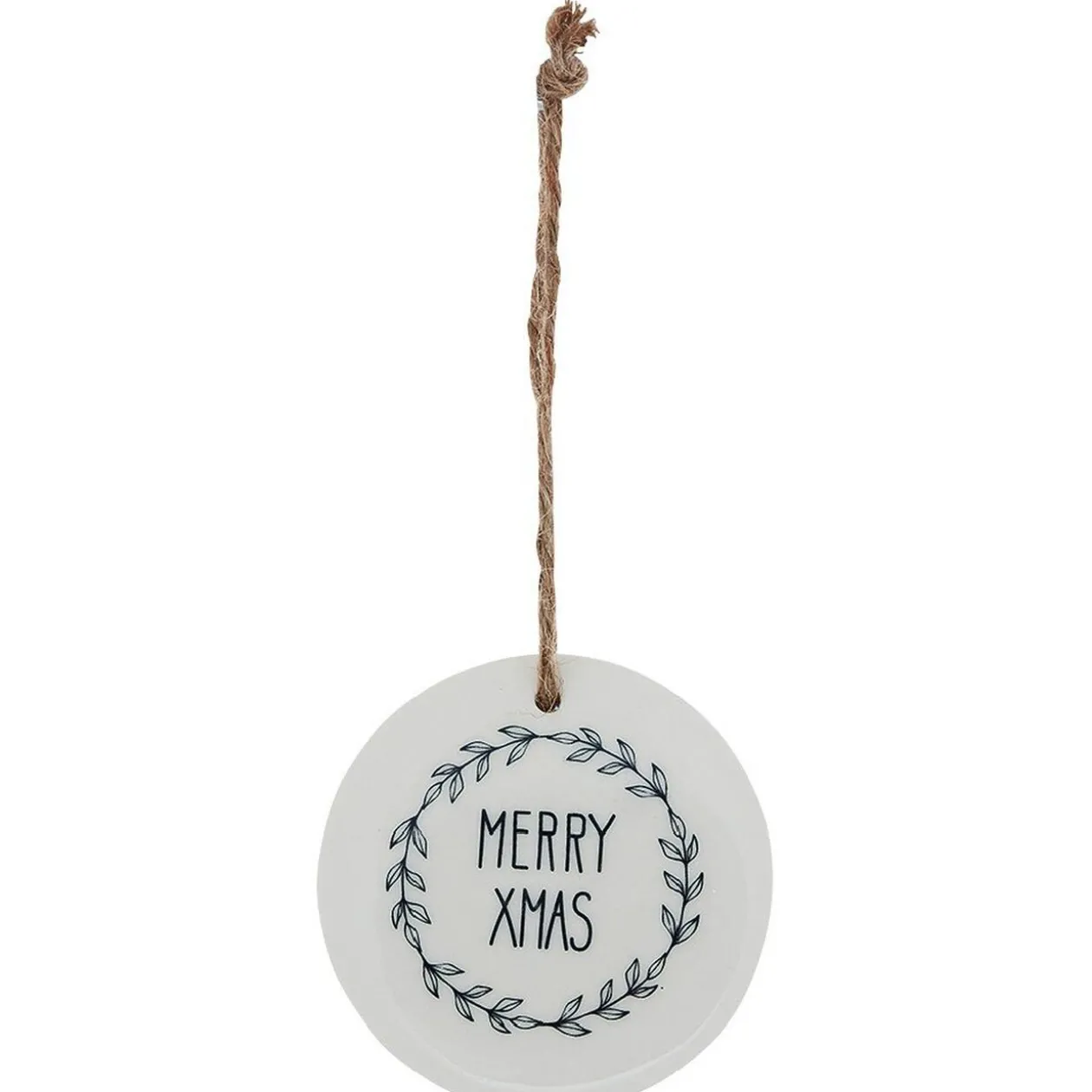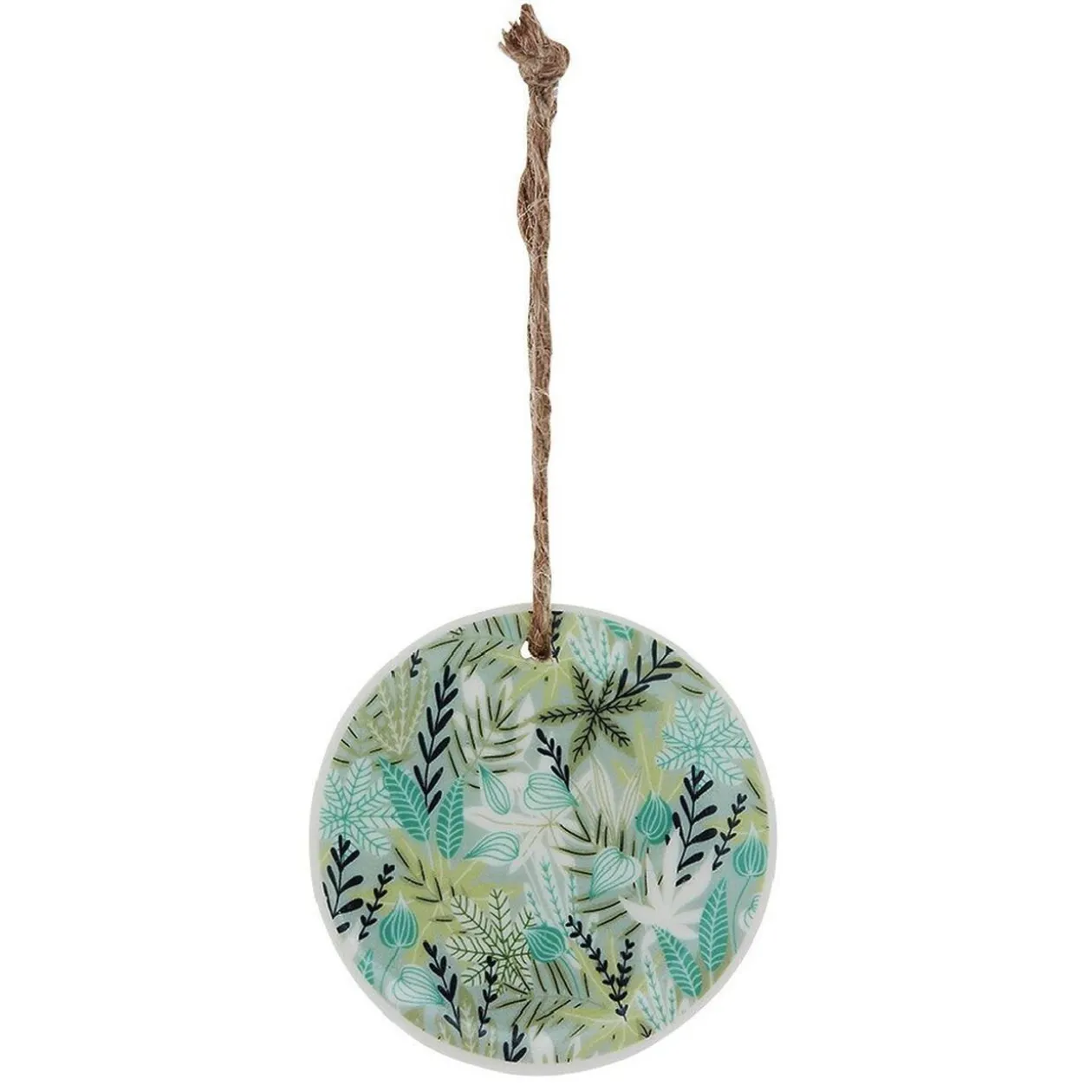Suspension de Noël de forme ronde en céramique peint esprit scandinave et nature.