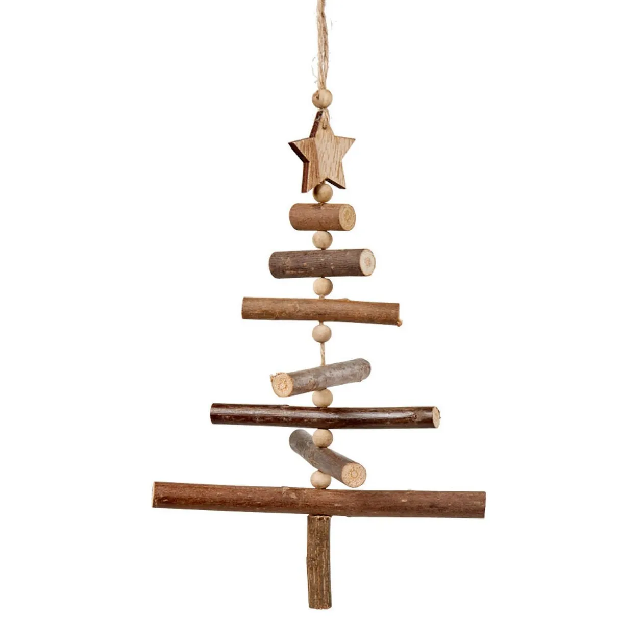Optez pour cette décoration en bois flotté marron en forme de sapin à suspendre.