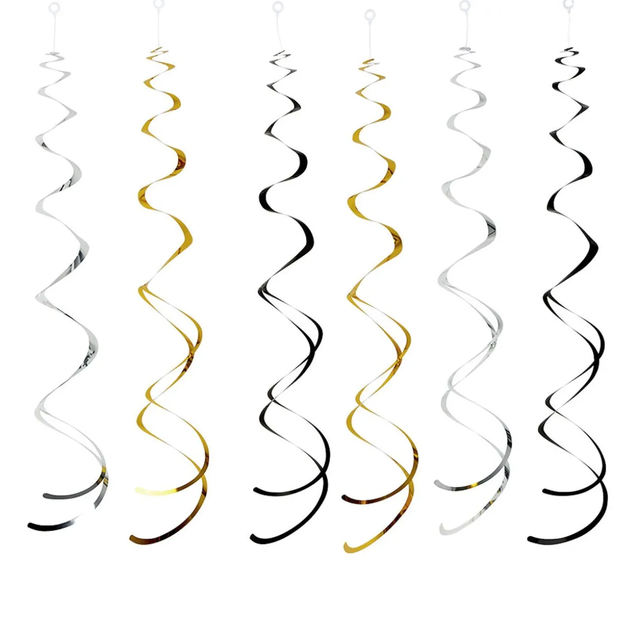 Suspension à spirales en papier de couleur noir, argenté et doré.